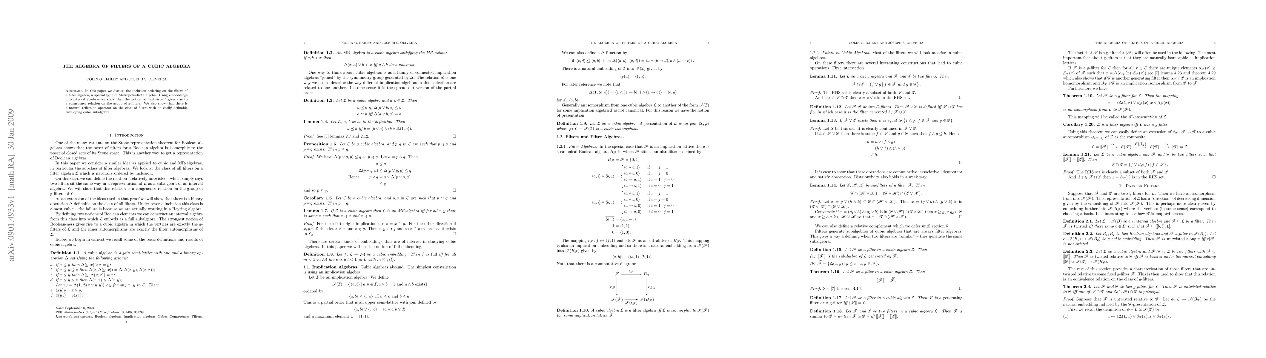 Researchers developed a new understanding of filters in cubic algebra, showing a congruence relation on group of g-filters and a natural reflection operator for easily definable enveloping subalgebras.