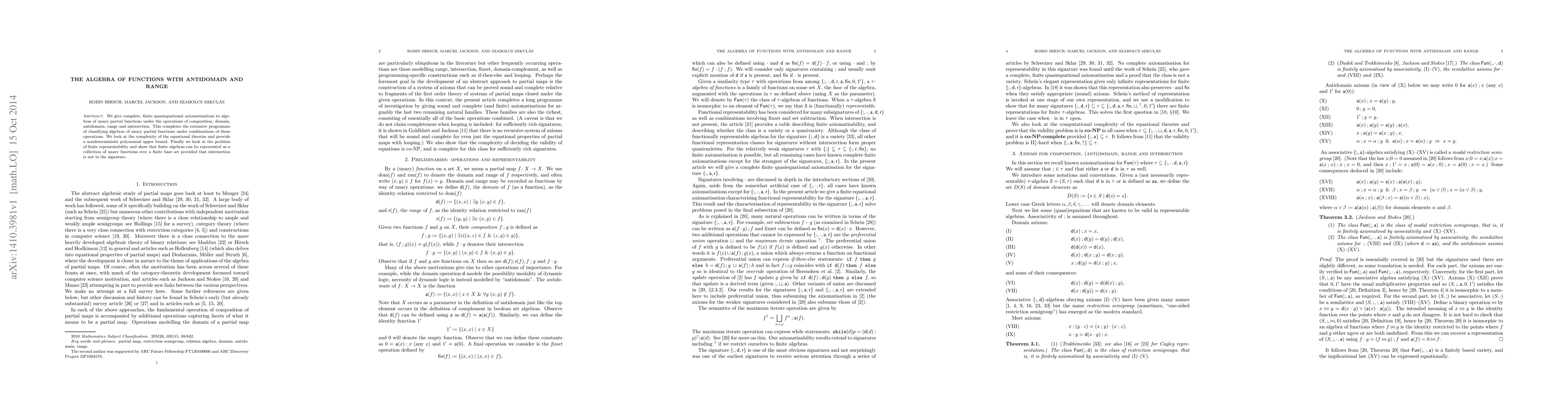 We give complete, finite quasiequational axiomatisations for algebras of unary partial functions under the operations of composition, domain, antidomain, range and intersection. This completes the extensive programme of classifying algebras of unary partial functions under combinations of these operations. We look at the complexity of the equational theories and provide a nondeterministic polynomial upper bound. Finally we look at the problem of finite representability and show that finite algebras can be represented as a collection of unary functions over a finite base set provided that intersection is not in the signature.