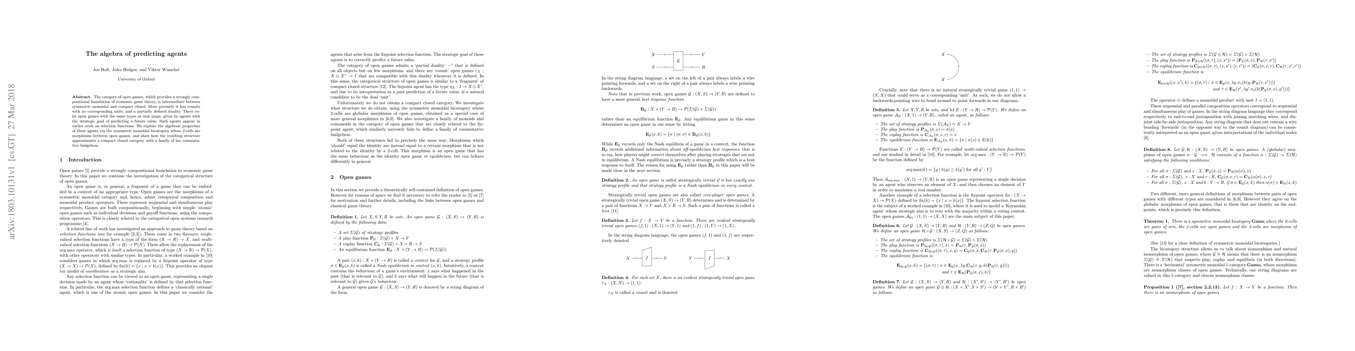 The category of open games, which provides a strongly compositional foundation of economic game theory, is intermediate between symmetric monoidal and compact closed. More precisely it has counits with no corresponding units, and a partially defined duality. There exist open games with the same types as unit maps, given by agents with the strategic goal of predicting a future value. Such agents appear in earlier work on selection functions. We explore the algebraic properties of these agents via the symmetric monoidal bicategory whose 2-cells are morphisms between open games, and show how the resulting structure approximates a compact closed category with a family of lax commutative bialgebras.