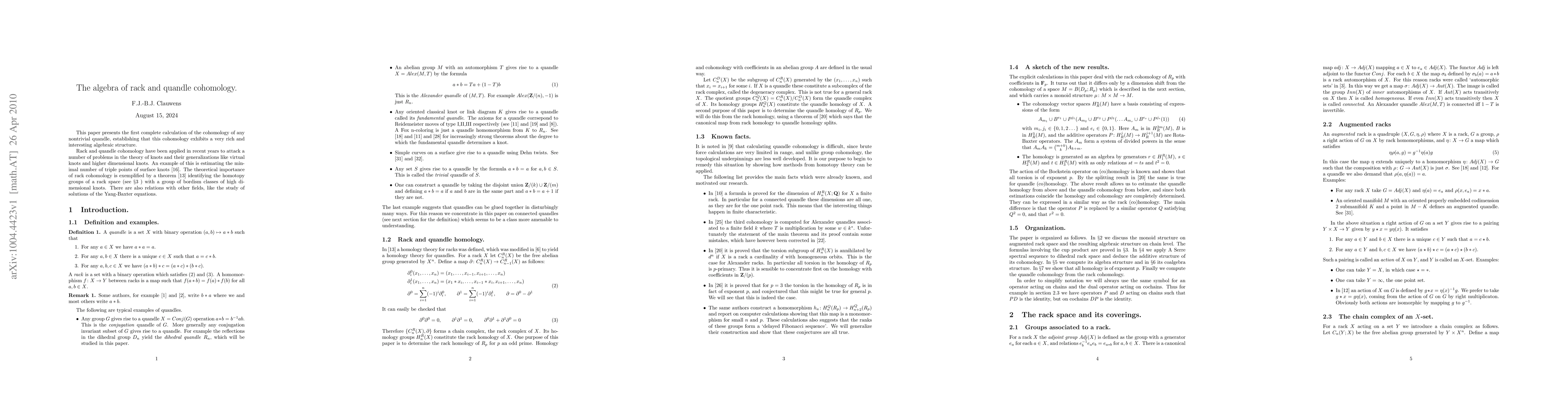 Summary: This paper introduces techniques for calculating rack and quandle cohomology, exemplified by a full determination of the cohomology for prime dihedral quandles. The findings provide deeper insights into algebraic structures known as racks and quandles.