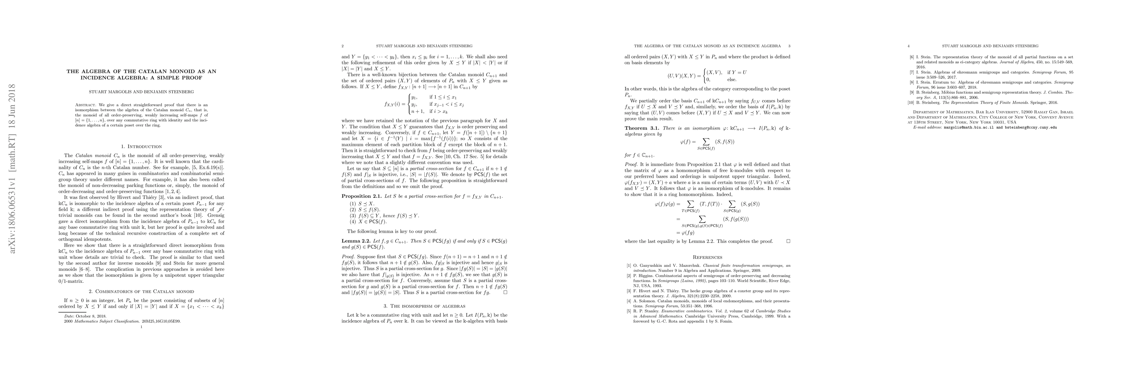 We give a direct straightforward proof that there is an isomorphism between the algebra of the Catalan monoid C_n that is, the monoid of all order-preserving, weakly increasing self-maps f of [n] = {1,...,n}, over any commutative ring with identity and the incidence algebra of a certain poset over the ring.