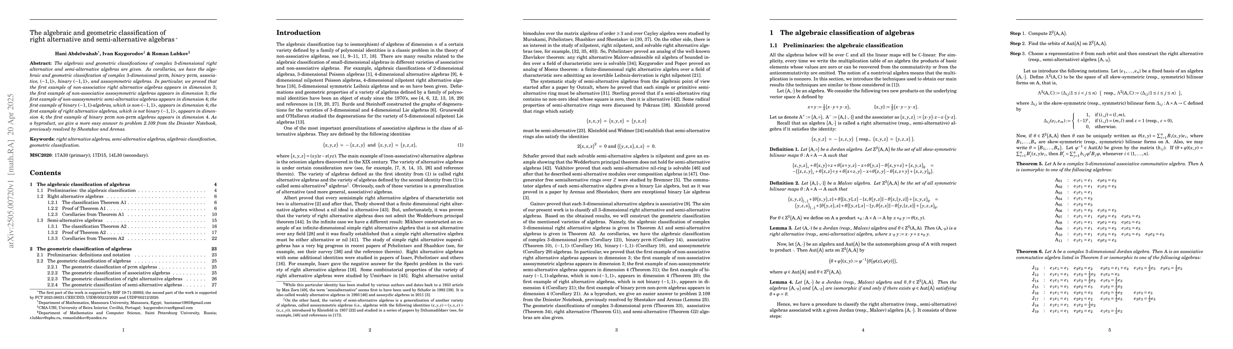 The paper presents comprehensive classifications and proofs for right alternative and semi-alternative algebras, along with corollaries for various subcategories.