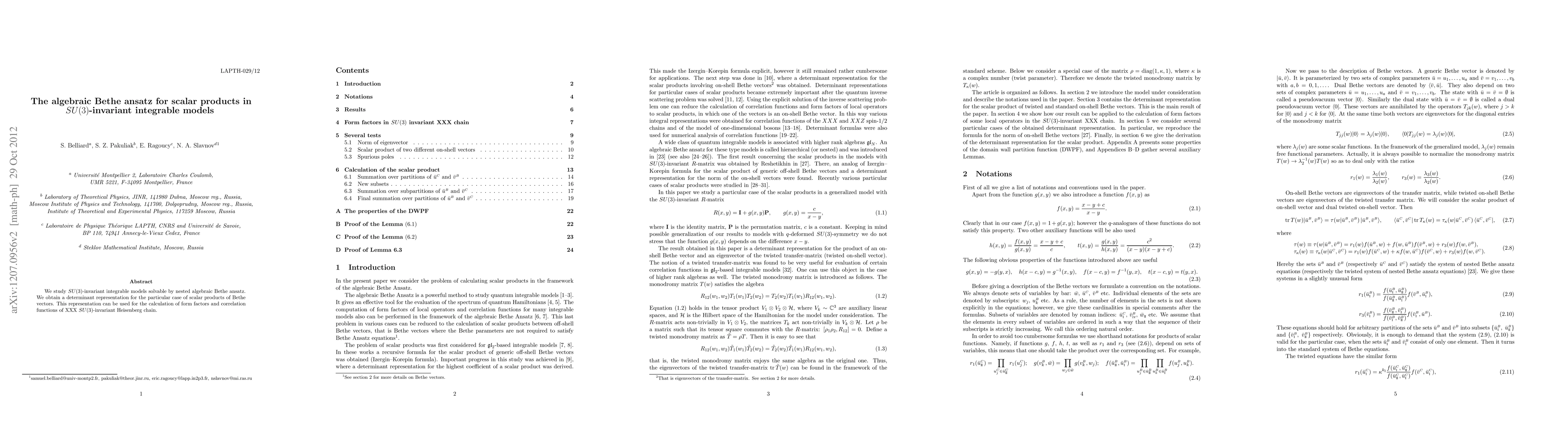 This paper explores SU(3)-invariant integrable models solvable via the nested algebraic Bethe ansatz, presenting a determinant formula for scalar products of Bethe vectors, which facilitates the computation of form factors and correlation functions for the XXX SU(3)-invariant Heisenberg chain.