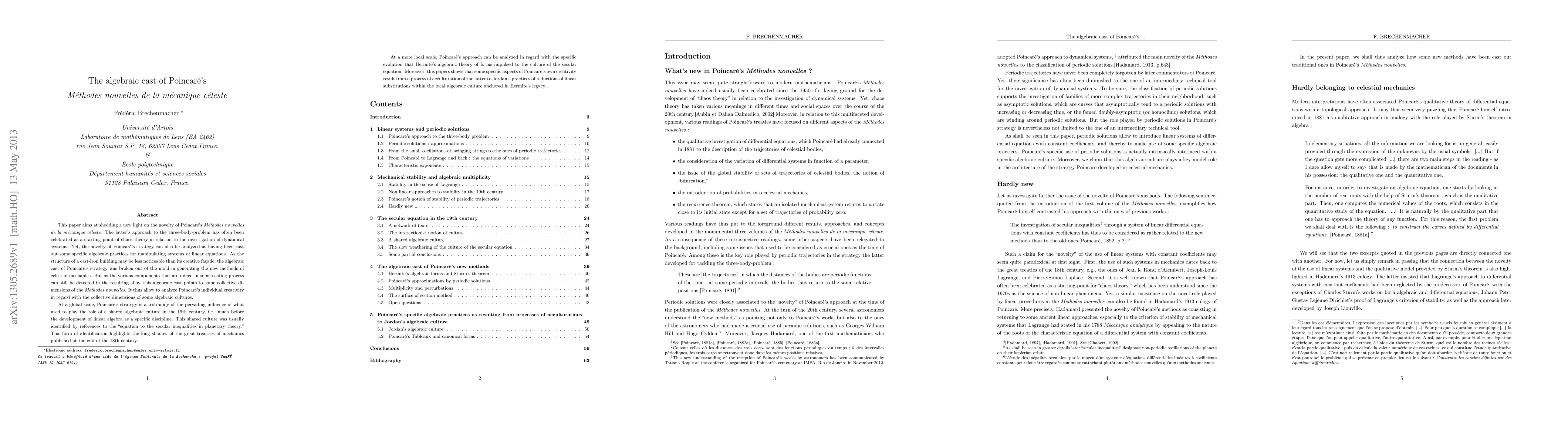 This paper explores the algebraic underpinnings of Poincaré's "Méthodes nouvelles de la mécanique céleste," highlighting how his novel approach to the three-body problem was influenced by 19th-century algebraic practices, particularly those related to secular inequalities and linear substitutions, thus revealing the collective dimensions of his individual creativity.