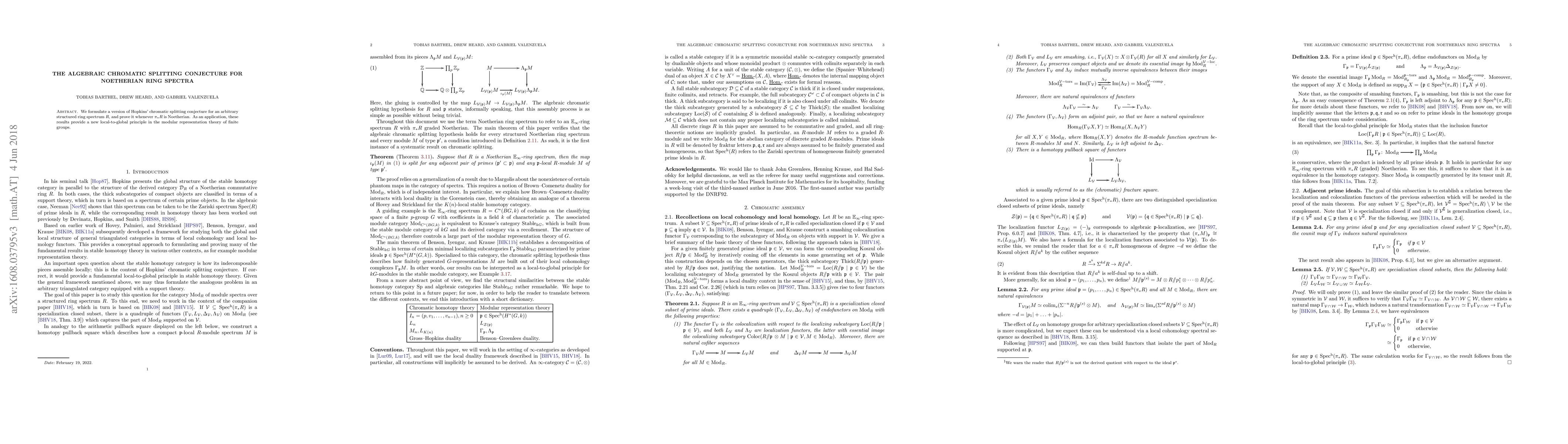The paper formulates a version of Hopkins' chromatic splitting conjecture for Noetherian ring spectra and proves it under the condition that $\pi_*R$ is Noetherian, providing a new local-to-global principle in modular representation theory of finite groups.
