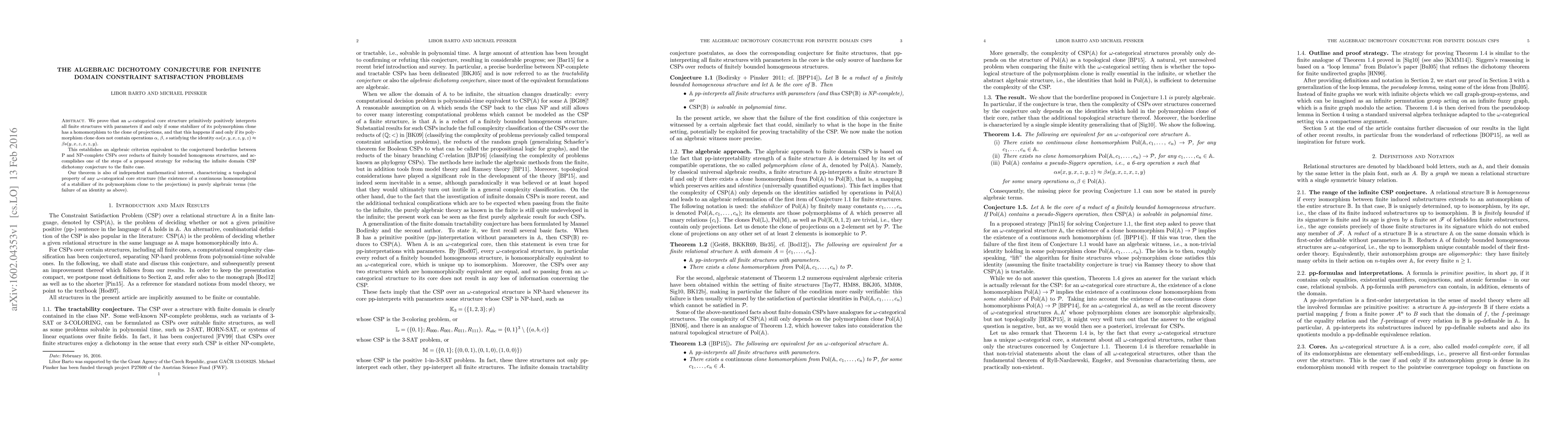 This paper proves an algebraic criterion for the $\omega$-categorical core structure's interpretation of finite structures, establishing a connection between the absence of specific operations in its polymorphism clone and the conjectured boundary between P and NP-complete constraint satisfaction problems. The result also characterizes a topological property in purely algebraic terms.