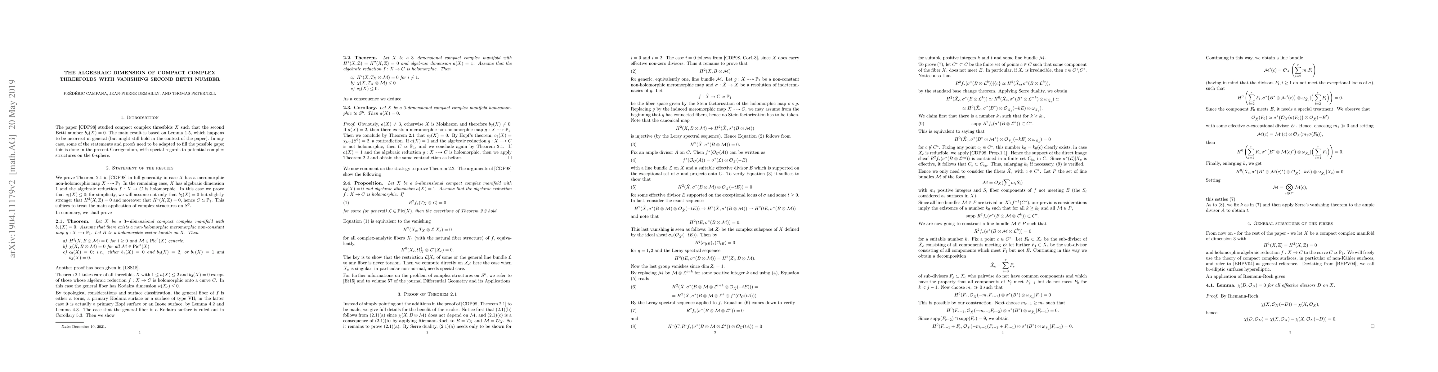 Summary: This paper investigates the algebraic dimension of compact complex threefolds with vanishing second Betti numbers, focusing on the intrinsic geometric properties. Minor revisions in sections 4 and 5 do not impact the overall findings.