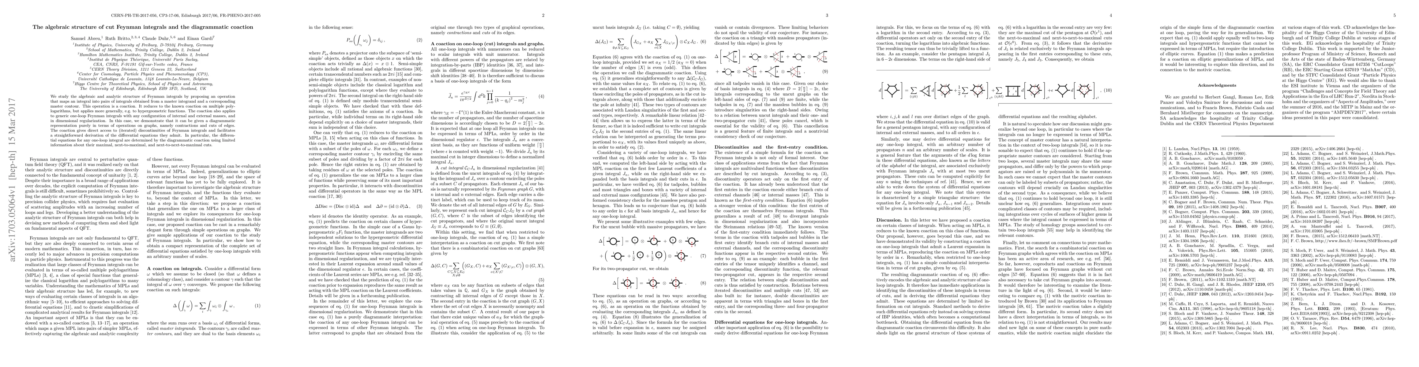 This paper proposes a coaction operation that maps Feynman integrals into pairs of integrals, revealing their algebraic and analytic structure. It simplifies the derivation of differential equations for one-loop integrals by using diagrammatic representations of contractions and cuts of graph edges.