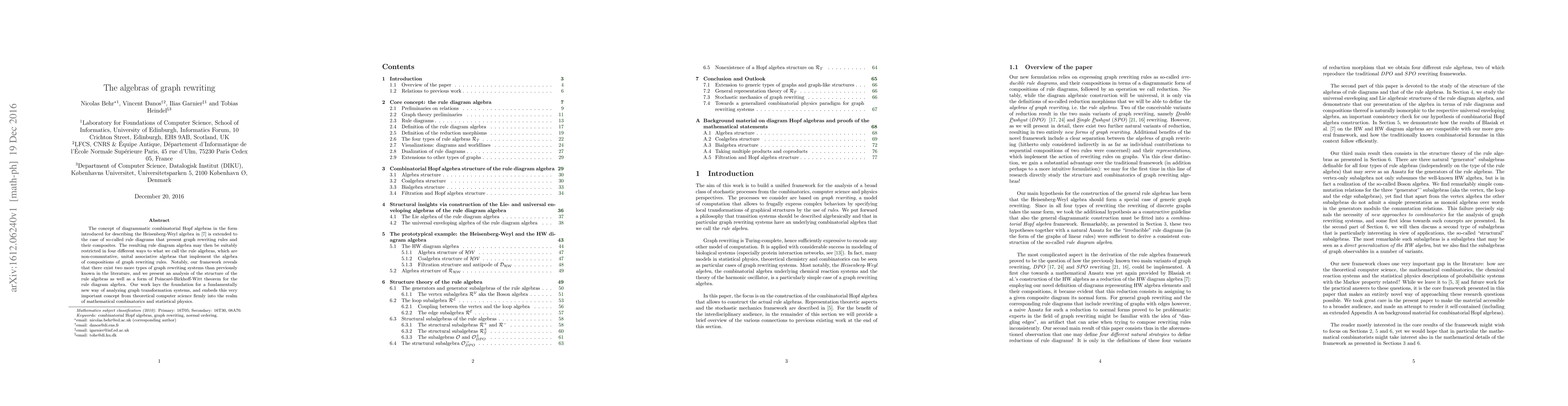 The concept of diagrammatic combinatorial Hopf algebras in the form introduced for describing the Heisenberg-Weyl algebra in~\cite{blasiak2010combinatorial} is extended to the case of so-called rule diagrams that present graph rewriting rules and their composites. The resulting rule diagram algebra may then be suitably restricted in four different ways to what we call the rule algebras, which are non-commutative, unital associative algebras that implement the algebra of compositions of graph rewriting rules. Notably, our framework reveals that there exist two more types of graph rewriting systems than previously known in the literature, and we present an analysis of the structure of the rule algebras as well as a form of Poincar\'{e}-Birkhoff-Witt theorem for the rule diagram algebra. Our work lays the foundation for a fundamentally new way of analyzing graph transformation systems, and embeds this very important concept from theoretical computer science firmly into the realm of mathematical combinatorics and statistical physics.
