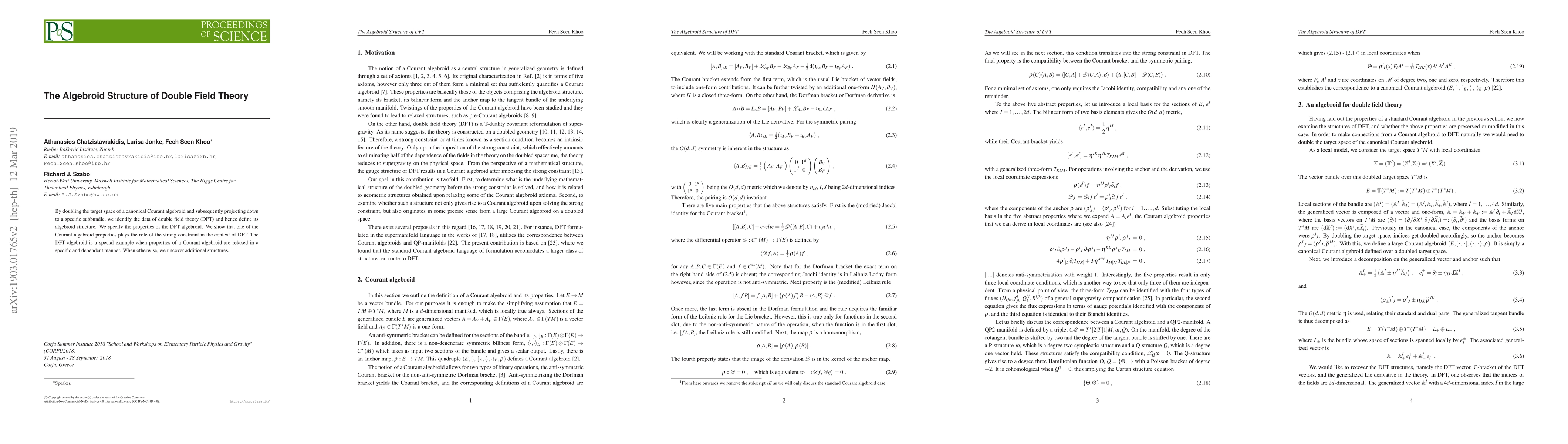 By doubling the target space of a canonical Courant algebroid and subsequently projecting down to a specific subbundle, we identify the data of double field theory (DFT) and hence define its algebroid structure. We specify the properties of the DFT algebroid. We show that one of the Courant algebroid properties plays the role of the strong constraint in the context of DFT. The DFT algebroid is a special example when properties of a Courant algebroid are relaxed in a specific and dependent manner. When otherwise, we uncover additional structures.