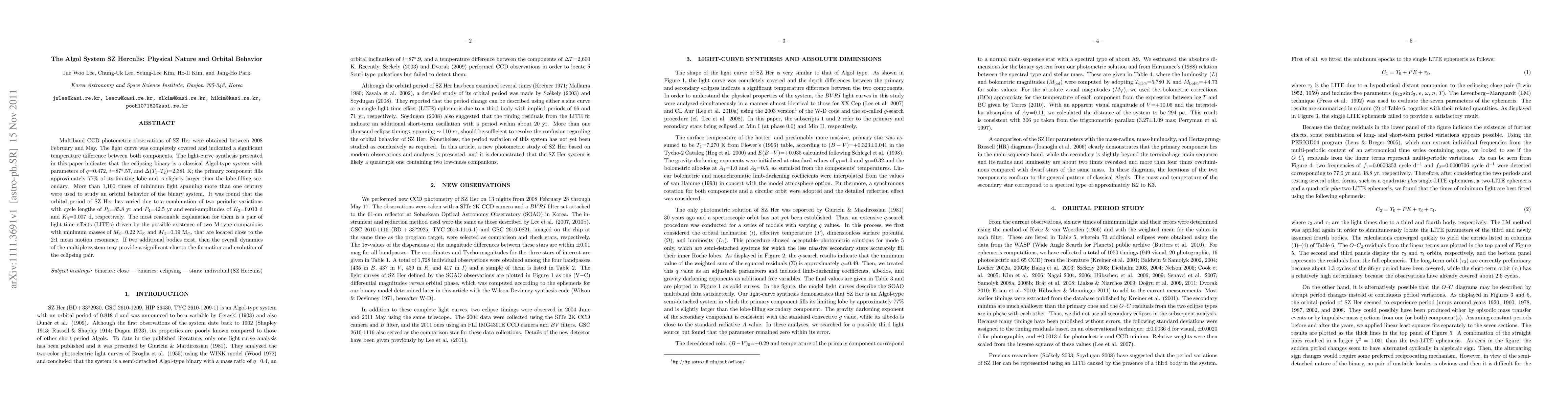 This paper analyzes the classical Algol-type binary system SZ Herculis, revealing significant temperature differences between its components and an orbital period variation due to light-time effects from potential two M-type companions. The system's parameters and long-term orbital behavior suggest insights into the dynamics and evolution of such multiple star systems.