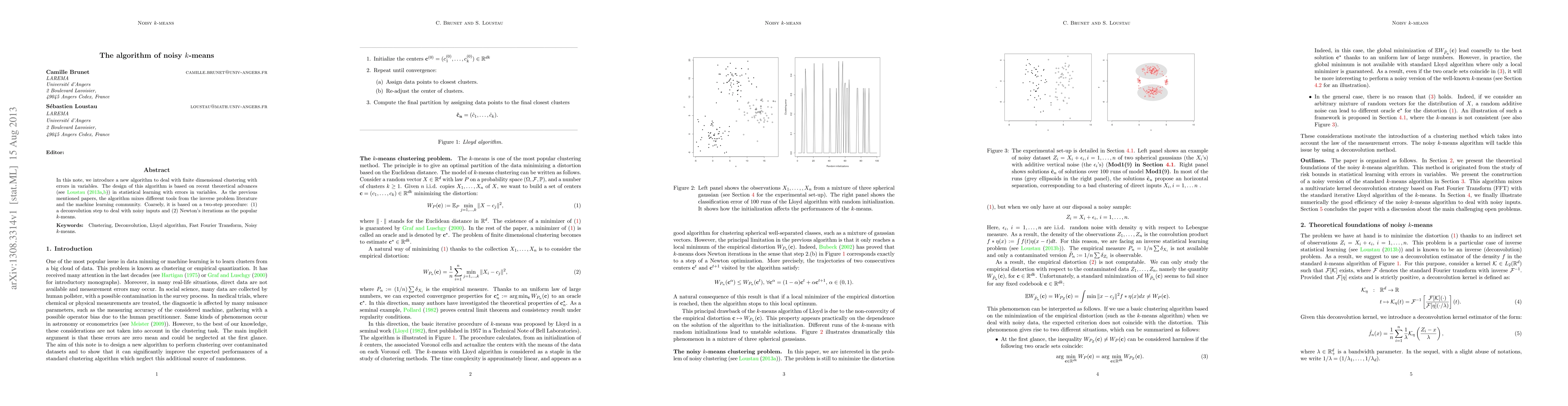 In this note, we introduce a new algorithm to deal with finite dimensional clustering with errors in variables. The design of this algorithm is based on recent theoretical advances (see Loustau (2013a,b)) in statistical learning with errors in variables. As the previous mentioned papers, the algorithm mixes different tools from the inverse problem literature and the machine learning community. Coarsely, it is based on a two-step procedure: (1) a deconvolution step to deal with noisy inputs and (2) Newton's iterations as the popular k-means.
