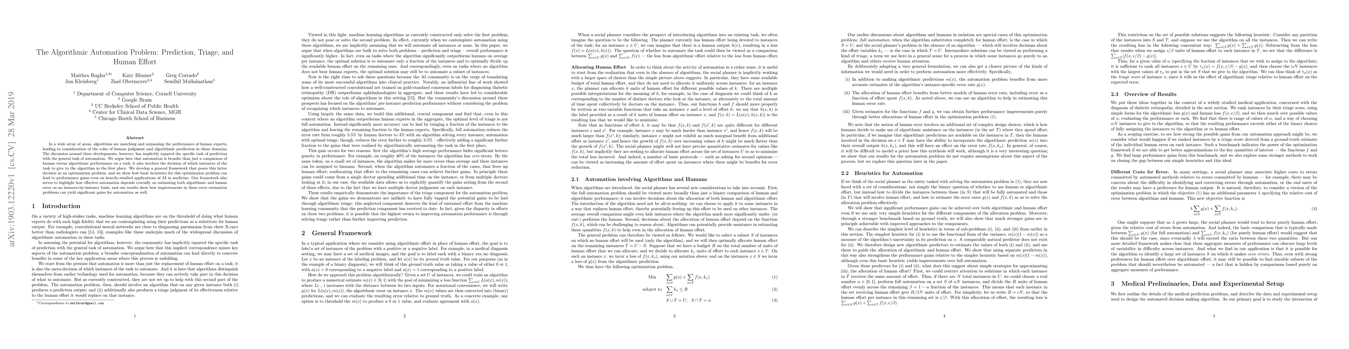 In a wide array of areas, algorithms are matching and surpassing the performance of human experts, leading to consideration of the roles of human judgment and algorithmic prediction in these domains. The discussion around these developments, however, has implicitly equated the specific task of prediction with the general task of automation. We argue here that automation is broader than just a comparison of human versus algorithmic performance on a task; it also involves the decision of which instances of the task to give to the algorithm in the first place. We develop a general framework that poses this latter decision as an optimization problem, and we show how basic heuristics for this optimization problem can lead to performance gains even on heavily-studied applications of AI in medicine. Our framework also serves to highlight how effective automation depends crucially on estimating both algorithmic and human error on an instance-by-instance basis, and our results show how improvements in these error estimation problems can yield significant gains for automation as well.