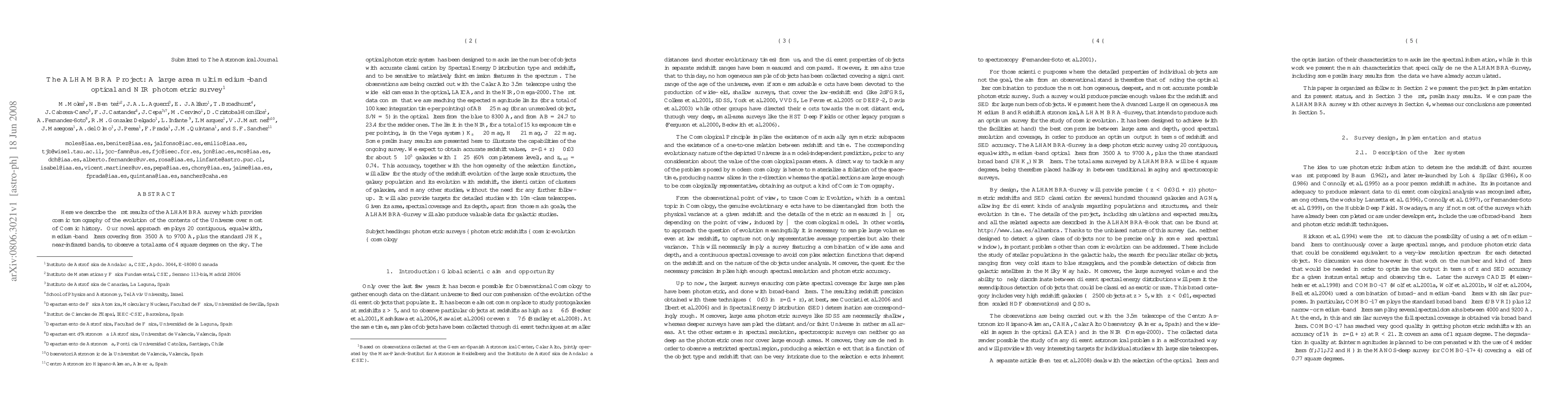 The ALHAMBRA Project conducts a large-area, multi-medium-band optical and NIR photometric survey to provide cosmic tomography of the Universe's evolution. The survey aims to achieve accurate redshift classifications and study the large-scale structure and galaxy population evolution.