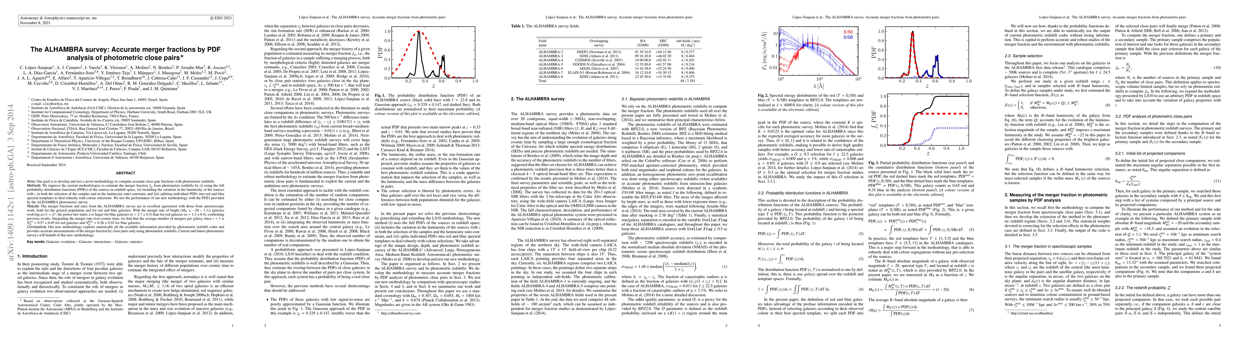 The ALHAMBRA survey introduces a novel methodology to accurately compute merger fractions using photometric redshifts, showing excellent agreement with spectroscopic data. The methodology improves estimates by fully utilizing redshift probability distributions, accounting for luminosity variations, and distinguishing between red and blue spectral templates.