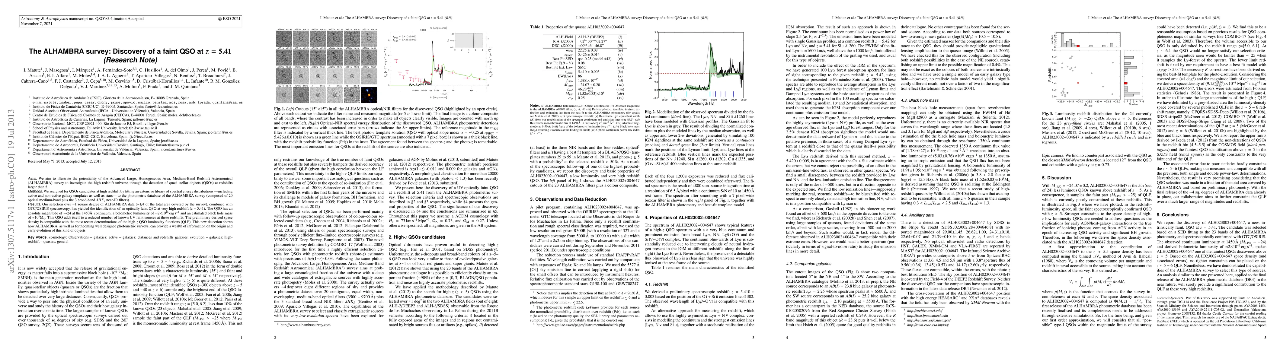 The ALHAMBRA survey successfully identified a faint QSO at z = 5.41, demonstrating the survey's potential for studying high-redshift universe objects. The detected QSO, with a bolometric luminosity of ~2x10^46 erg/s, supports recent high-z QSO luminosity function determinations.