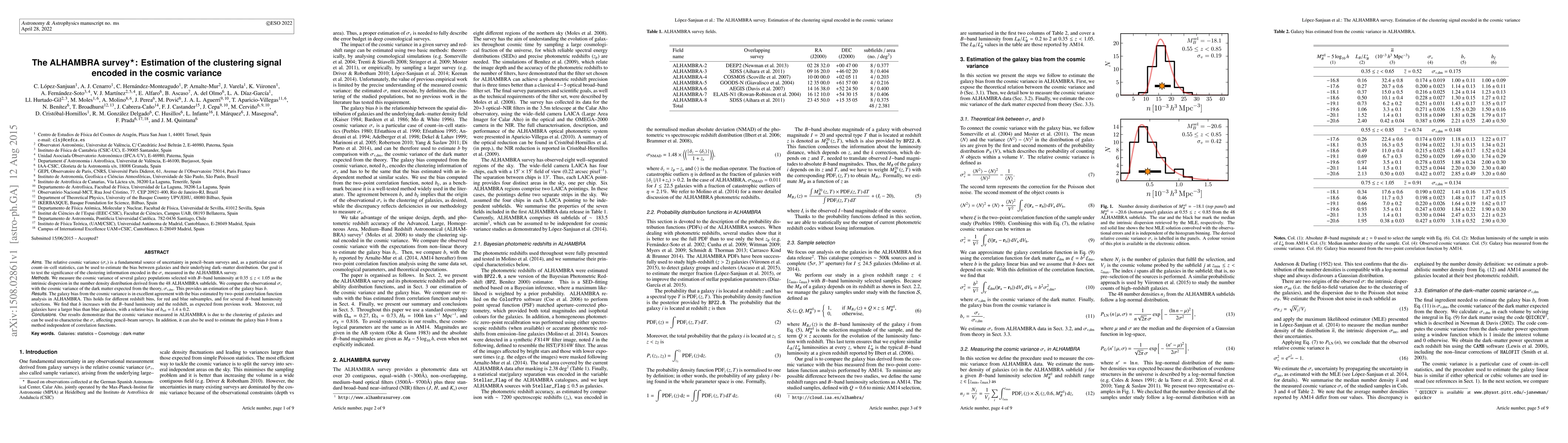 The ALHAMBRA survey estimates the clustering signal in cosmic variance to determine galaxy bias. The study finds that cosmic variance accurately reflects galaxy clustering and can estimate galaxy bias, independent of correlation functions, with red galaxies showing a higher bias than blue galaxies.