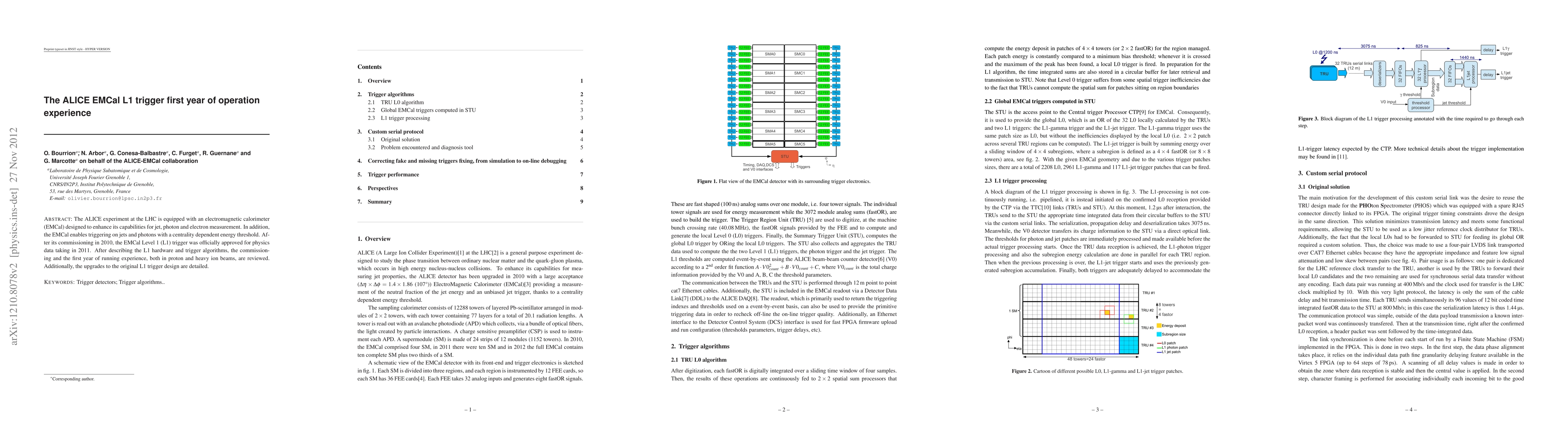 The ALICE EMCal L1 trigger, commissioned in 2010 and approved for data taking in 2011, successfully operated for its first year in both proton and heavy ion beams, enabling triggering on jets and photons with adjustable thresholds. Upgrades to the original L1 trigger design were also implemented.