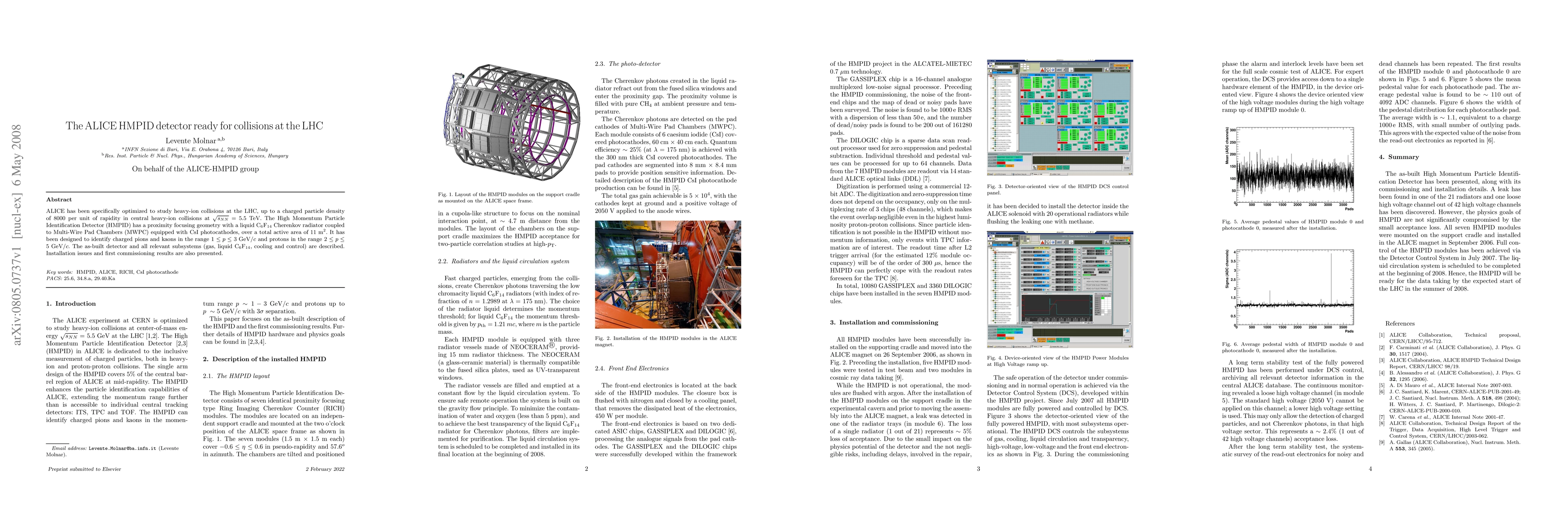 The ALICE HMPID detector, optimized for heavy-ion collisions at the LHC, employs a proximity focusing geometry with a liquid $\rm C_{6}F_{14}$ Cherenkov radiator to identify charged particles in specific momentum ranges, and its commissioning results are reported.