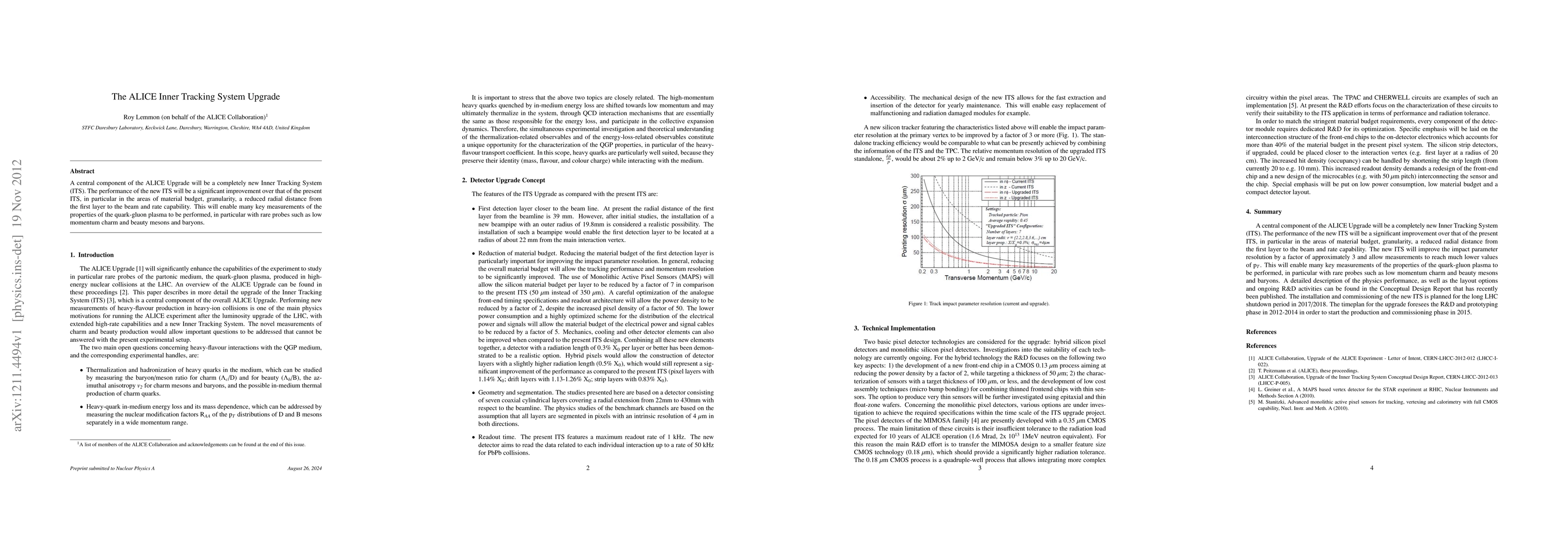 The ALICE Upgrade introduces a new Inner Tracking System (ITS) with enhanced material budget, granularity, and rate capability, significantly improving its performance for studying quark-gluon plasma and rare particles like low momentum charm and beauty mesons.