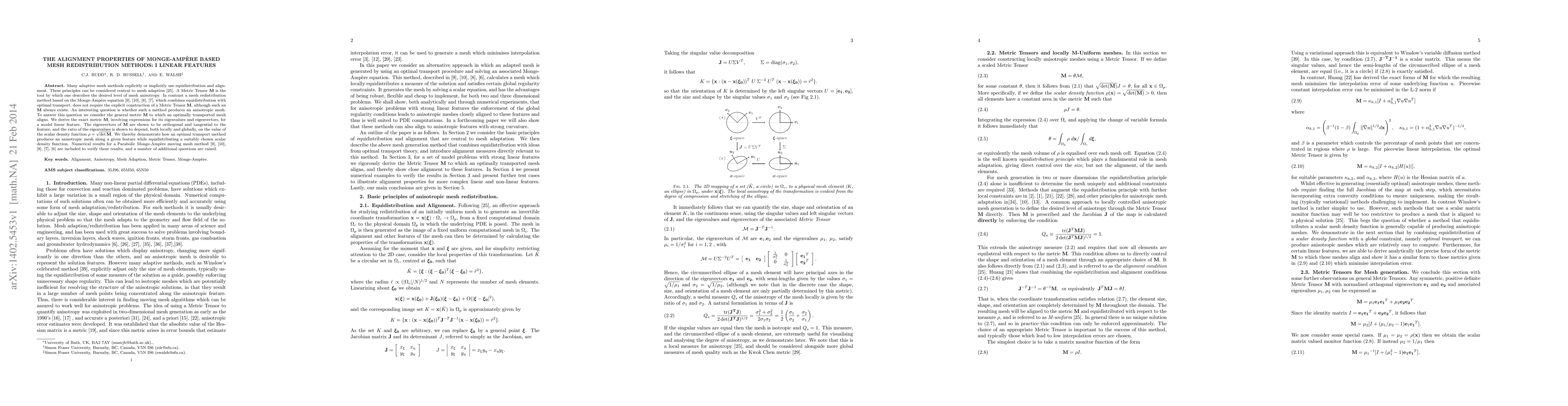This paper investigates the alignment properties of a Monge-Ampere based mesh redistribution method, demonstrating that it produces an anisotropic mesh along a linear feature while equidistributing a scalar density function. Numerical results confirm the theoretical findings and raise further questions about the method's broader applications.