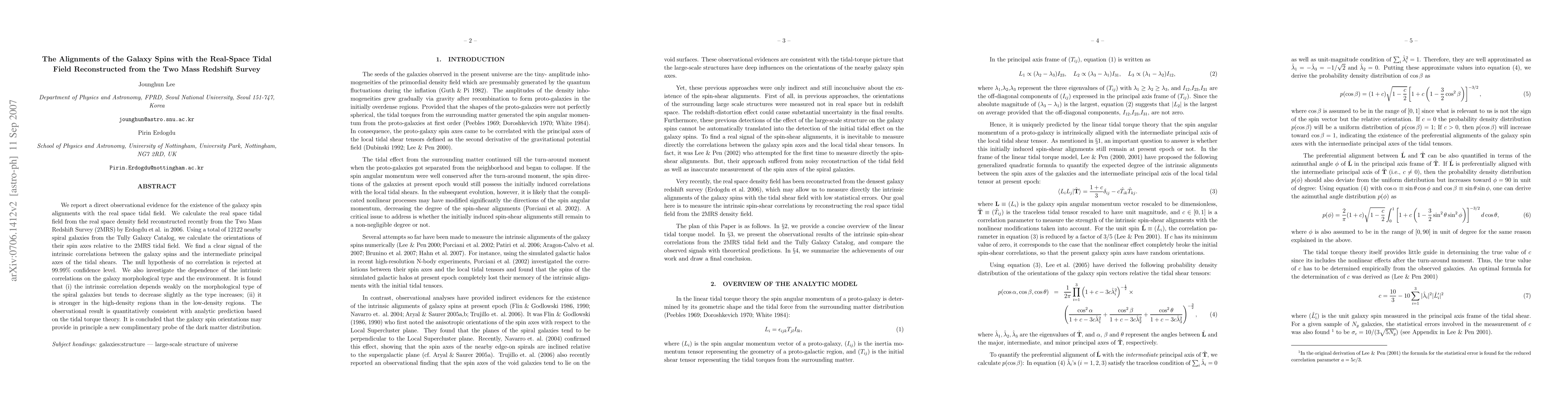 Development and application of a method to reconstruct real-space tidal field from 2MRS density field and analyze galaxy spin alignments with it.