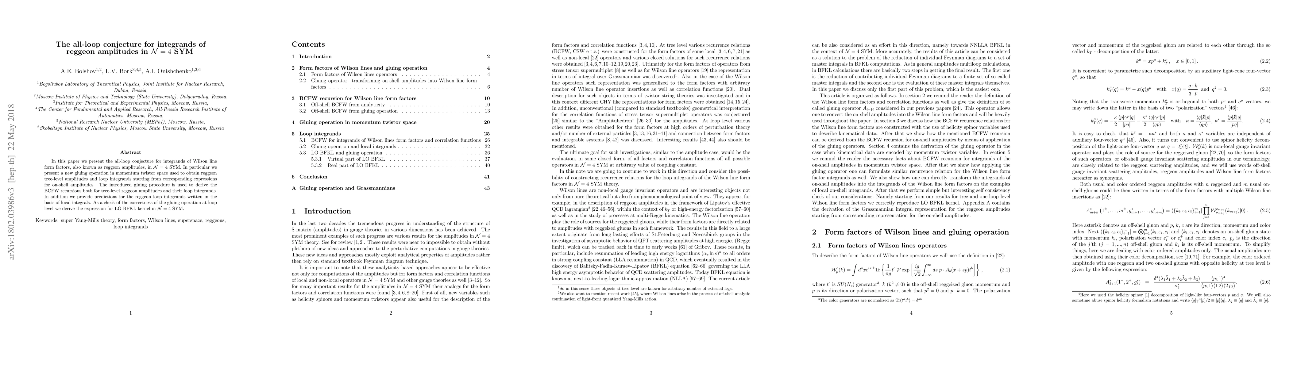 In this paper we present the all-loop conjecture for integrands of Wilson line form factors, also known as reggeon amplitudes, in N=4 SYM. In particular we present a new gluing operation in momentum twistor space used to obtain reggeon tree-level amplitudes and loop integrands starting from corresponding expressions for on-shell amplitudes. The introduced gluing procedure is used to derive BCFW recursions both for tree-level reggeon amplitudes and their loop integrands. In addition we provide predictions for reggeon loop integrands written in the basis of local integrals. As a check of the correctness of gluing operation at loop level we derive the expression for LO BFKL kernel in N=4 SYM.