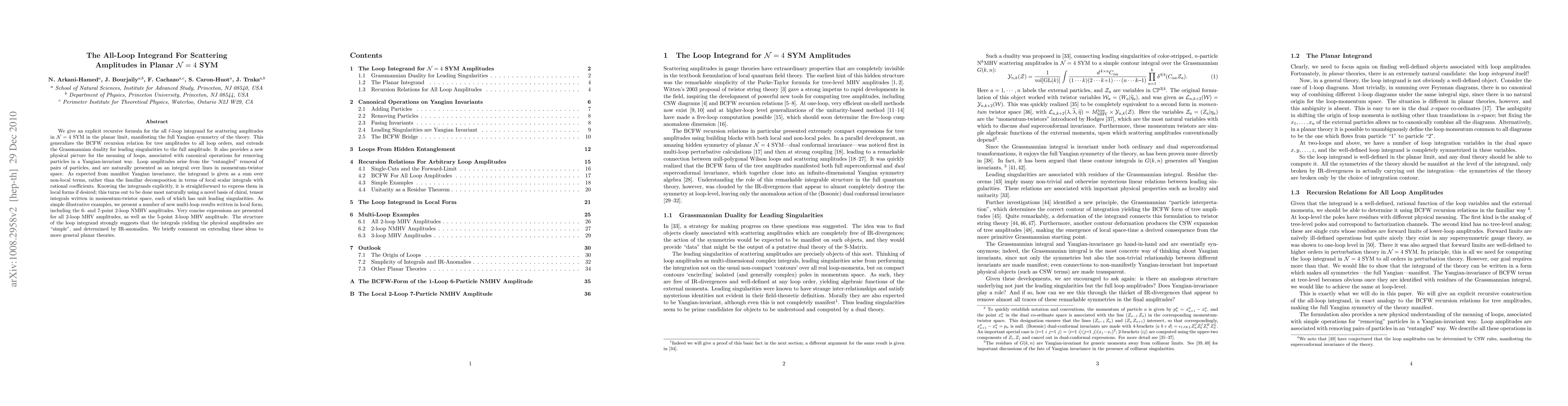 We give an explicit recursive formula for the all L-loop integrand for scattering amplitudes in N=4 SYM in the planar limit, manifesting the full Yangian symmetry of the theory. This generalizes the BCFW recursion relation for tree amplitudes to all loop orders, and extends the Grassmannian duality for leading singularities to the full amplitude. It also provides a new physical picture for the meaning of loops, associated with canonical operations for removing particles in a Yangian-invariant way. Loop amplitudes arise from the "entangled" removal of pairs of particles, and are naturally presented as an integral over lines in momentum-twistor space. As expected from manifest Yangian-invariance, the integrand is given as a sum over non-local terms, rather than the familiar decomposition in terms of local scalar integrals with rational coefficients. Knowing the integrands explicitly, it is straightforward to express them in local forms if desired; this turns out to be done most naturally using a novel basis of chiral, tensor integrals written in momentum-twistor space, each of which has unit leading singularities. As simple illustrative examples, we present a number of new multi-loop results written in local form, including the 6- and 7-point 2-loop NMHV amplitudes. Very concise expressions are presented for all 2-loop MHV amplitudes, as well as the 5-point 3-loop MHV amplitude. The structure of the loop integrand strongly suggests that the integrals yielding the physical amplitudes are "simple", and determined by IR-anomalies. We briefly comment on extending these ideas to more general planar theories.