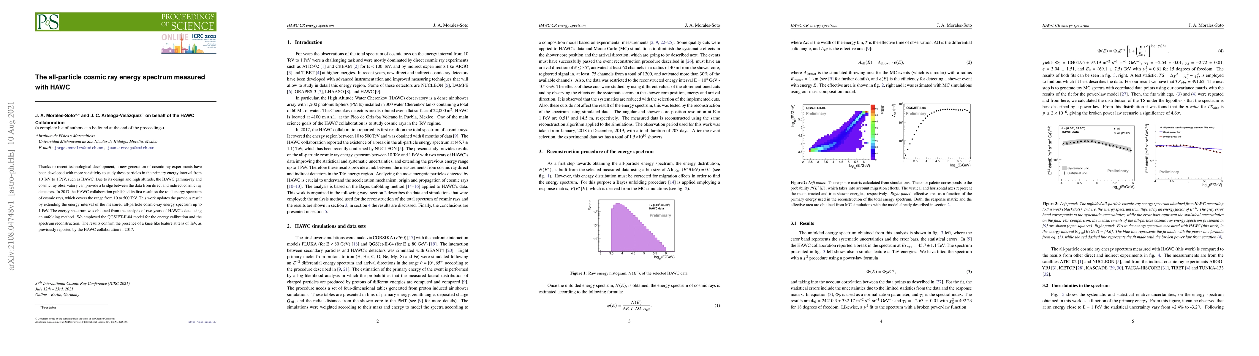 The HAWC observatory has extended its measurement of the all-particle cosmic ray energy spectrum up to 1 PeV, confirming a knee-like feature at tens of TeV, bridging data from direct and indirect cosmic ray detectors. The updated spectrum was analyzed using two years of HAWC data and the QGSJET-II-04 model for calibration.