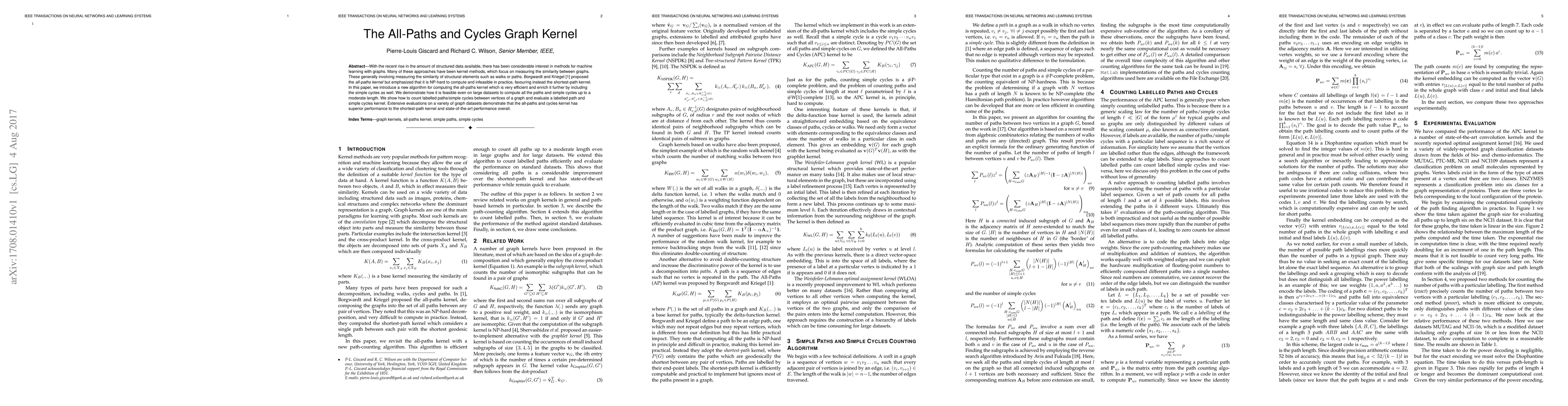 With the recent rise in the amount of structured data available, there has been considerable interest in methods for machine learning with graphs. Many of these approaches have been kernel methods, which focus on measuring the similarity between graphs. These generally involving measuring the similarity of structural elements such as walks or paths. Borgwardt and Kriegel proposed the all-paths kernel but emphasized that it is NP-hard to compute and infeasible in practice, favouring instead the shortest-path kernel. In this paper, we introduce a new algorithm for computing the all-paths kernel which is very efficient and enrich it further by including the simple cycles as well. We demonstrate how it is feasible even on large datasets to compute all the paths and simple cycles up to a moderate length. We show how to count labelled paths/simple cycles between vertices of a graph and evaluate a labelled path and simple cycles kernel. Extensive evaluations on a variety of graph datasets demonstrate that the all-paths and cycles kernel has superior performance to the shortest-path kernel and state-of-the-art performance overall.