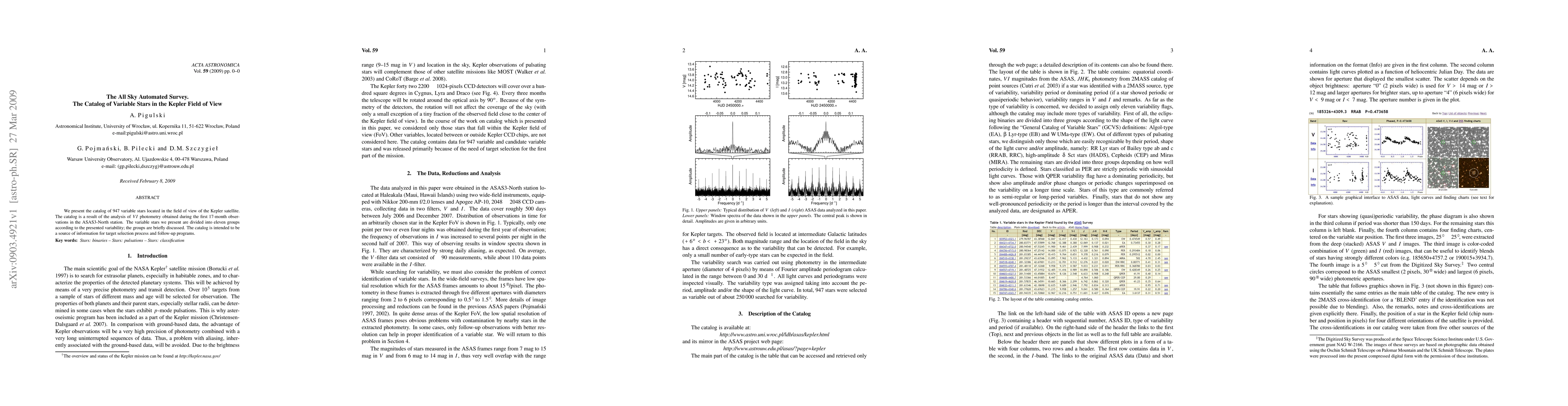 The paper presents a catalog of 947 variable stars in the Kepler field of view, derived from 17 months of VI photometry data from the ASAS3-North station, and categorizes them into eleven variability groups for future target selection and follow-up research.