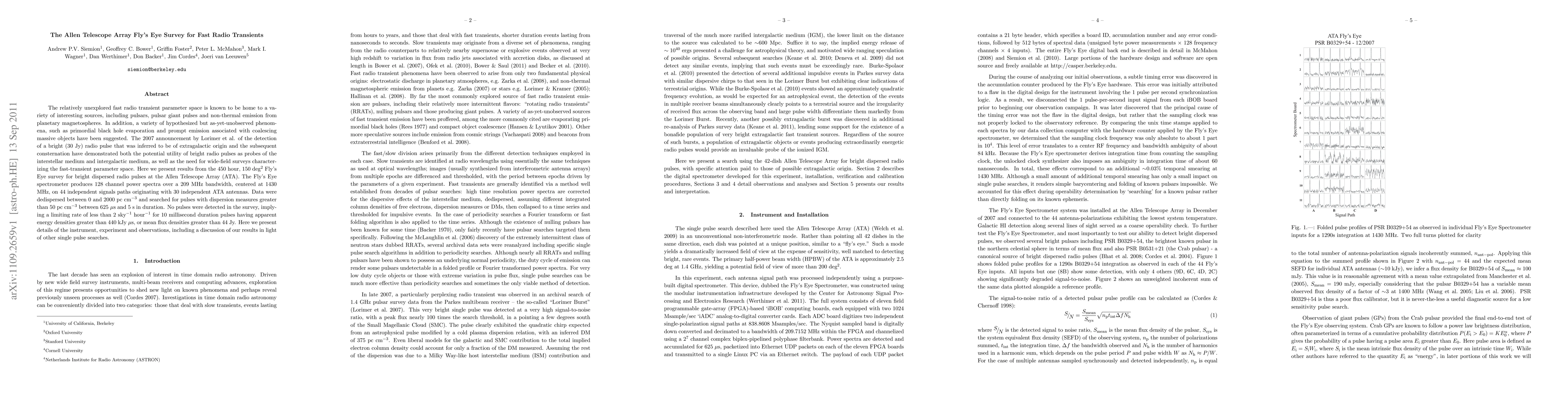The Allen Telescope Array's Fly's Eye survey conducted over 450 hours did not detect any fast radio transients, setting a limiting rate of less than 2 sky^-1 hour^-1 for pulses with specific energy and duration criteria. The findings underscore the need for further surveys to explore the fast radio transient parameter space.