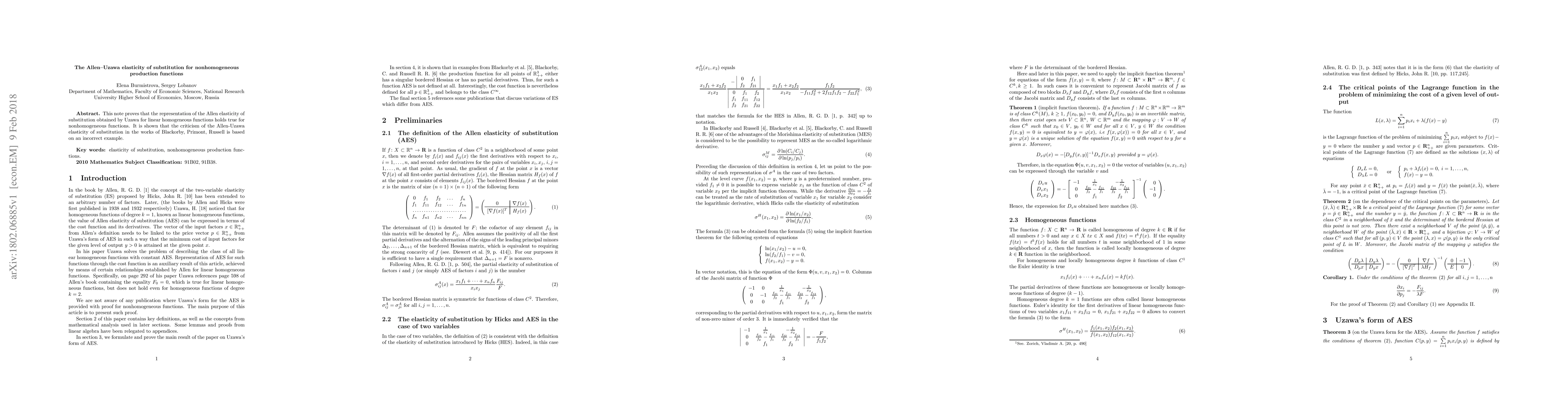 The paper proves that the Allen-Uzawa elasticity of substitution for nonhomogeneous production functions is equivalent to the traditional representation for linear homogeneous functions. It corrects a criticism of the concept.