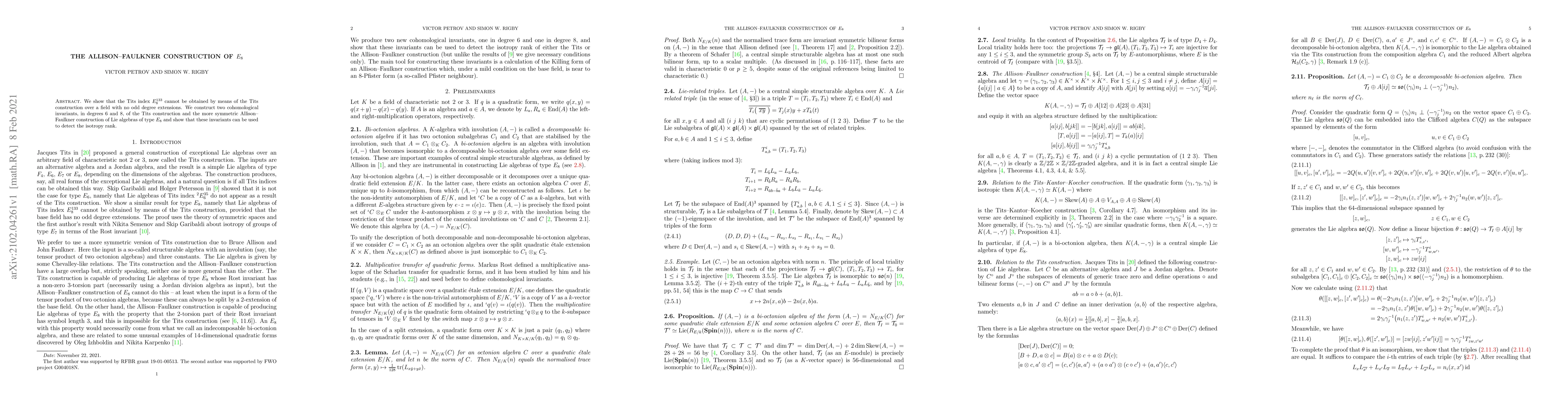 This paper demonstrates that the Tits construction cannot yield the $E_8^{133}$ index without odd degree extensions, and introduces cohomological invariants for the Allison-Faulkner construction, which can detect the isotropy rank of $E_8$ Lie algebras.