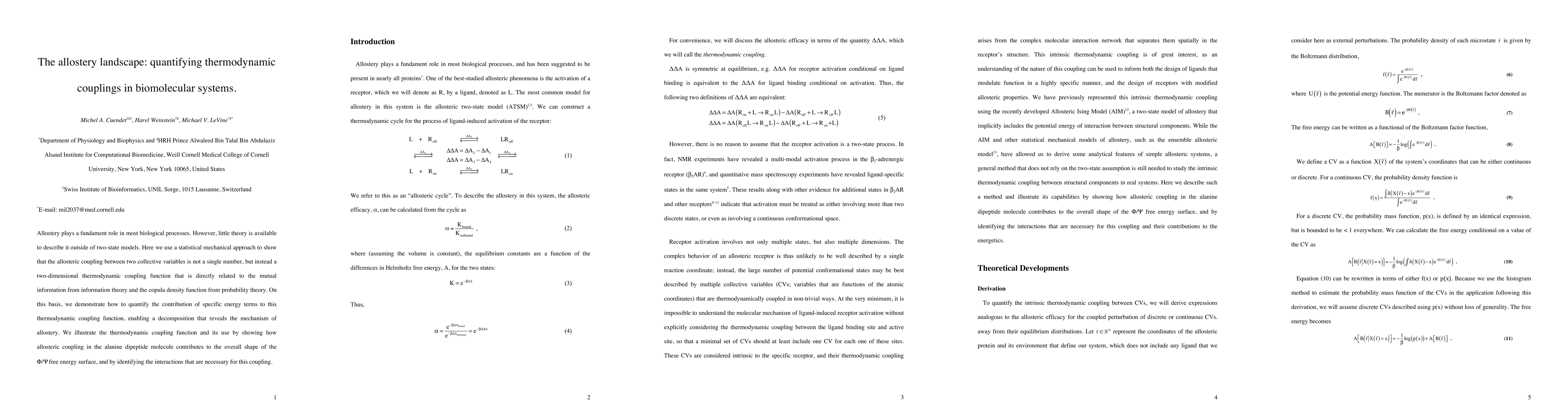 Allostery plays a fundament role in most biological processes. However, little theory is available to describe it outside of two-state models. Here we use a statistical mechanical approach to show that the allosteric coupling between two collective variables is not a single number, but instead a two-dimensional thermodynamic coupling function that is directly related to the mutual information from information theory and the copula density function from probability theory. On this basis, we demonstrate how to quantify the contribution of specific energy terms to this thermodynamic coupling function, enabling a decomposition that reveals the mechanism of allostery. We illustrate the thermodynamic coupling function and its use by showing how allosteric coupling in the alanine dipeptide molecule contributes to the overall shape of the {\Phi}/{\Psi} free energy surface, and by identifying the interactions that are necessary for this coupling.