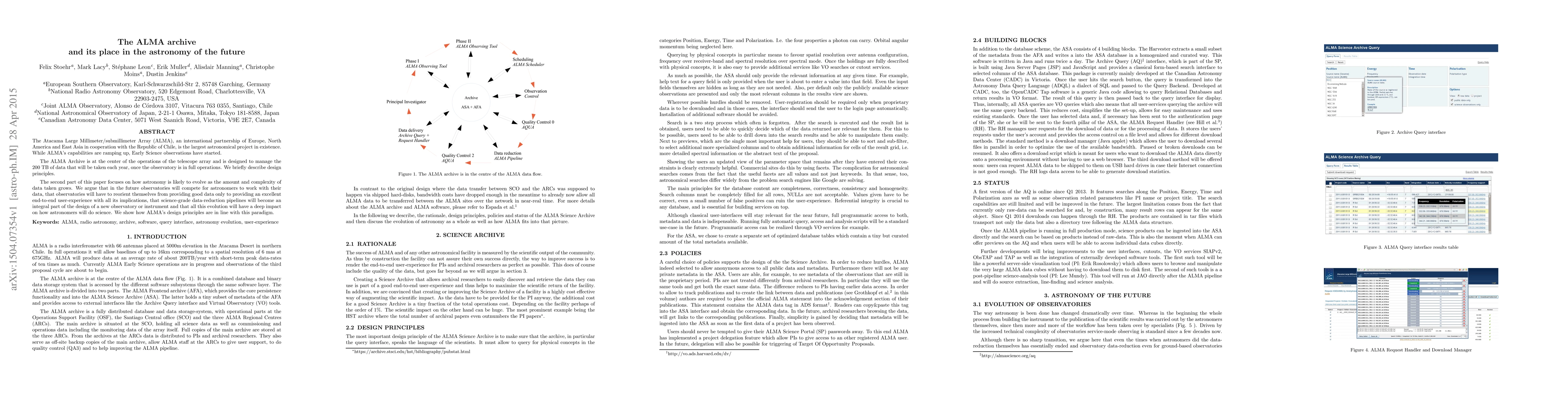 The ALMA Archive is crucial for managing the vast data from the ALMA telescope, which will generate 200 TB annually. Future astronomy will shift from merely providing data to offering an excellent user-experience, with science-grade data-reduction pipelines becoming integral, and ALMA's design aligns with these evolving paradigms.