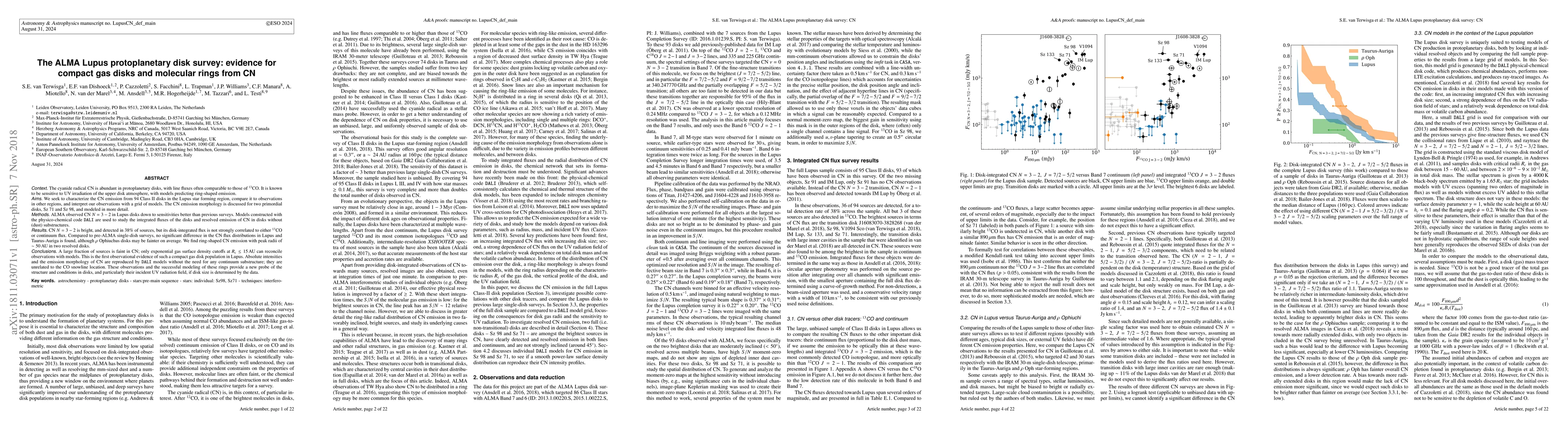 The ALMA Lupus protoplanetary disk survey reveals that CN emission is bright in 38% of Class II disks, often showing ring-shaped morphology indicative of UV irradiation. Models suggest a significant population of disks with compact gas structures, providing new insights into disk conditions and UV radiation fields.