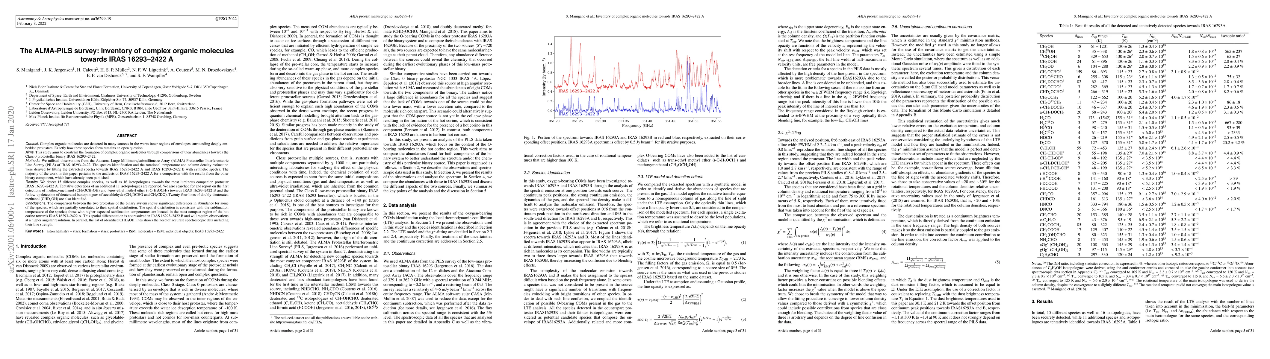 This study detects 15 complex organic molecules towards IRAS 16293 A, a protostar in a binary system, finding significant differences in abundance between the two protostars, which correlates with their spatial distribution and sublimation temperatures.