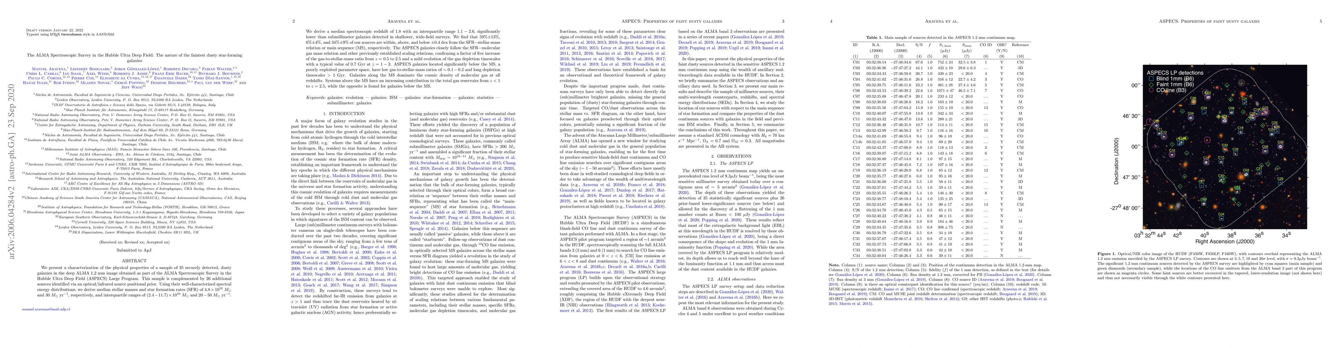 We present a characterization of the physical properties of a sample of 35 securely-detected, dusty galaxies in the deep ALMA 1.2-mm image obtained as part of the ALMA Spectroscopic Survey in the {\it Hubble} Ultra Deep Field (ASPECS) Large Program. This sample is complemented by 26 additional sources identified via an optical/infrared source positional prior. Using their well-characterized spectral energy distributions, we derive median stellar masses and star formation rates (SFR) of $4.8\times10^{10}~M_\odot$ and 30 $M_\odot$ yr$^{-1}$, and interquartile ranges of $(2.4-11.7)\times10^{10}~M_\odot$ and $20-50~M_\odot$ yr$^{-1}$, respectively. We derive a median spectroscopic redshift of 1.8 with an interquartile range $1.1-2.6$, significantly lower than submillimeter galaxies detected in shallower, wide-field surveys. We find that 59\%$\pm$13\%, 6\%$\pm$4\%, and 34\%$\pm$9\% of our sources are within, above and below $\pm0.4$ dex from the SFR-stellar mass relation or main-sequence (MS), respectively. The ASPECS galaxies closely follow the SFR-molecular gas mass relation and other previously established scaling relations, confirming a factor of five increase of the gas-to-stellar mass ratio from $z=0.5$ to $z=2.5$ and a mild evolution of the gas depletion timescales with a typical value of 0.7 Gyr at $z=1-3$. ASPECS galaxies located significantly below the MS, a poorly exploited parameter space, have low gas-to-stellar-mass ratios of $\sim0.1-0.2$ and long depletion timescales $>1$ Gyr. Galaxies along the MS dominate the cosmic density of molecular gas at all redshifts. Systems above the main sequence have an increasing contribution to the total gas reservoirs from $z<1$ to $z=2.5$, while the opposite is found for galaxies below the MS.