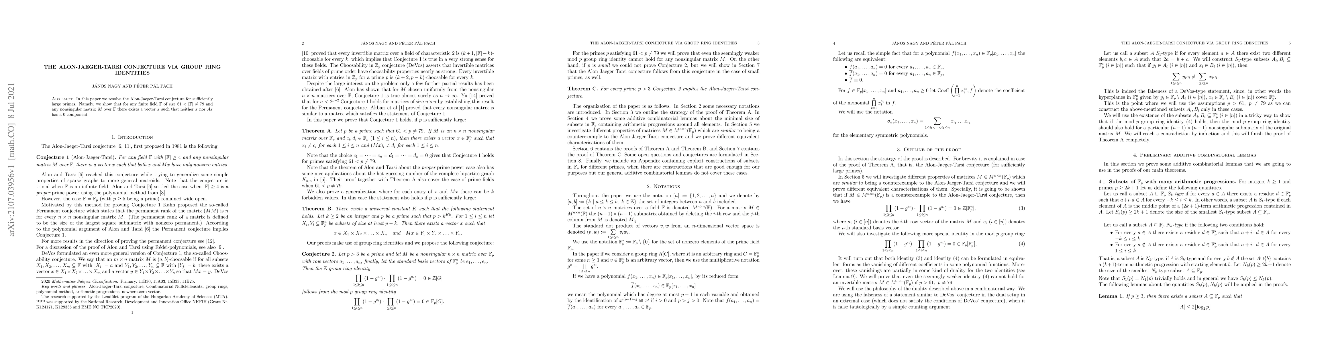 In this paper we resolve the Alon-Jaeger-Tarsi conjecture for sufficiently large primes. Namely, we show that for any finite field $\mathbb{F}$ of size $61<|\mathbb F|\ne 79$ and any nonsingular matrix $M$ over $\mathbb{F}$ there exists a vector $x$ such that neither $x$ nor $Ax$ has a 0 component.