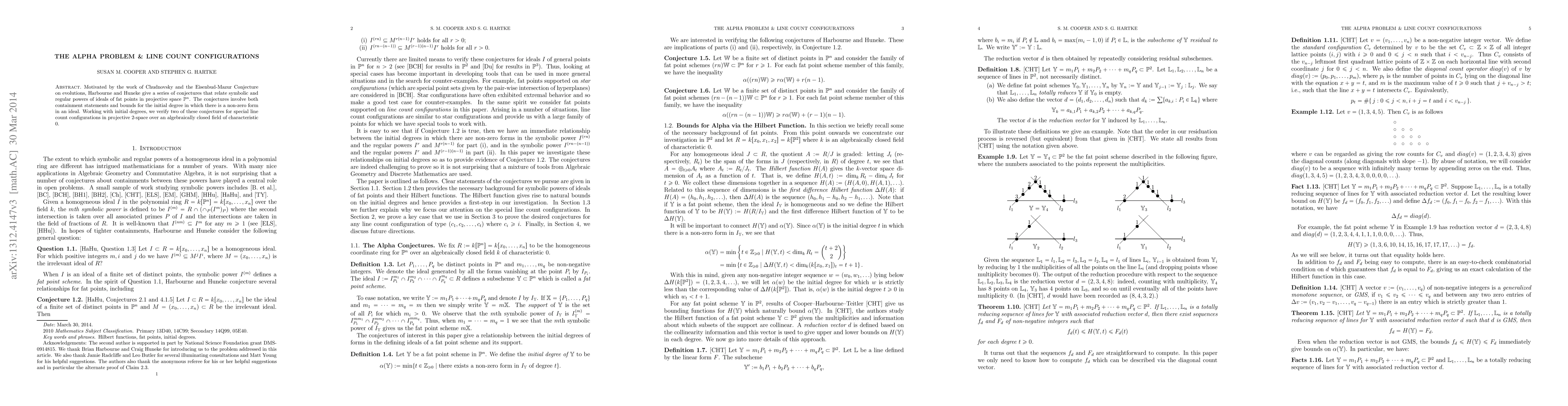 Motivated by the work of Chudnovsky and the Eisenbud-Mazur Conjecture on evolutions, Harbourne and Huneke give a series of conjectures that relate symbolic and regular powers of ideals of fat points in $\mathbb P^n$. The conjectures involve both containment statements and bounds for the initial degree in which there is a non-zero form in an ideal. Working with initial degrees, we verify two of these conjectures for special line count configurations in projective 2-space over an algebraically closed field of characteristic 0.