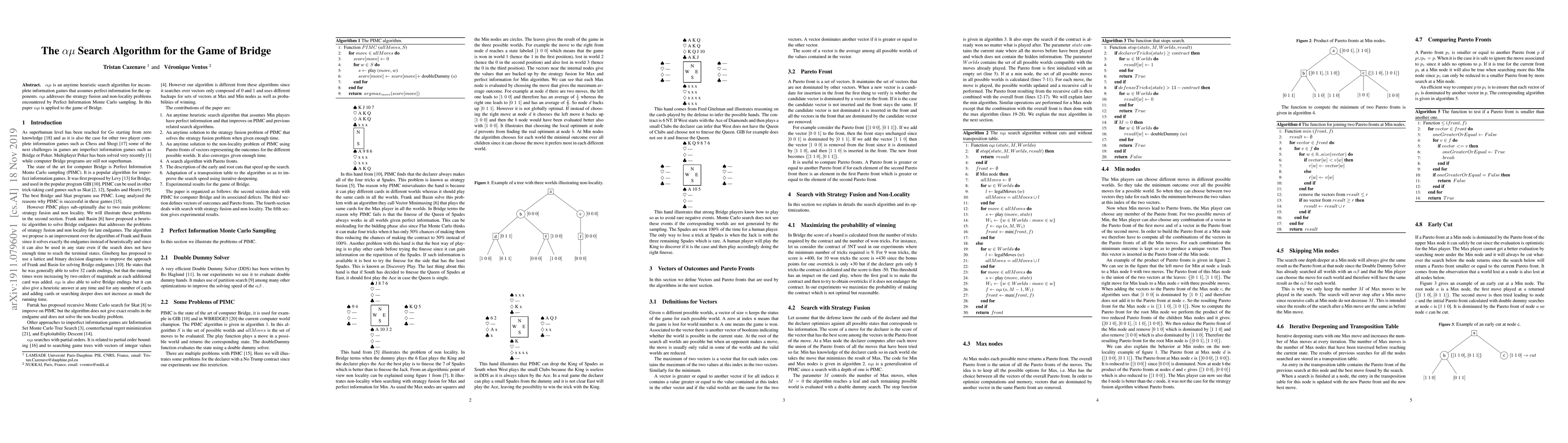The απ search algorithm is applied to Bridge for the first time, addressing strategy fusion and non-locality problems with perfect information assumption for opponents.