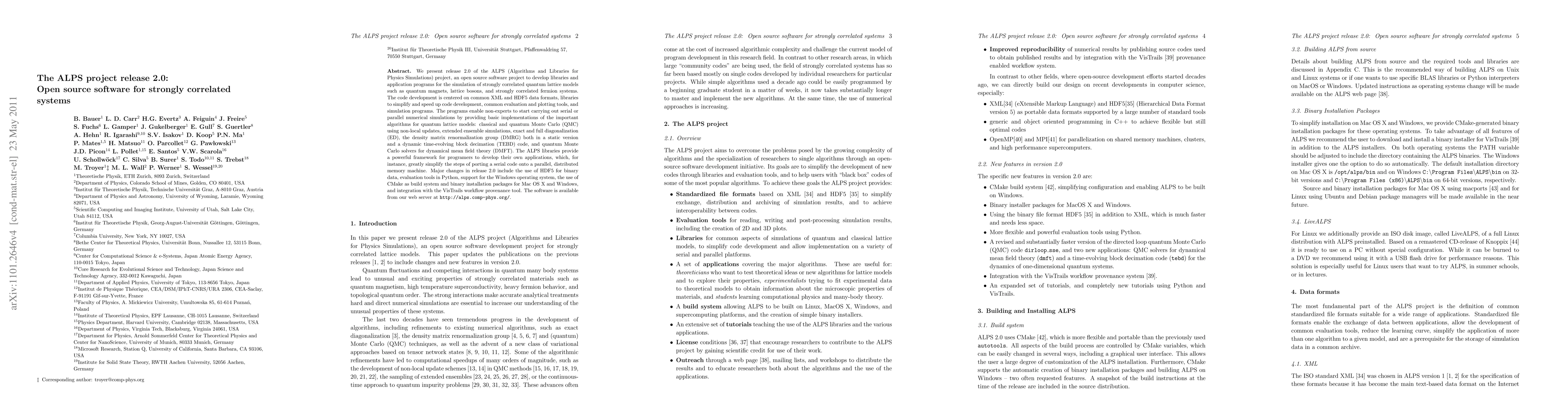 The ALPS project release 2.0 offers open source software for simulating strongly correlated quantum lattice models, featuring libraries and tools for efficient code development and parallel simulations. Major updates include HDF5 data formats, Python evaluation tools, and support for Windows and Mac OS X.