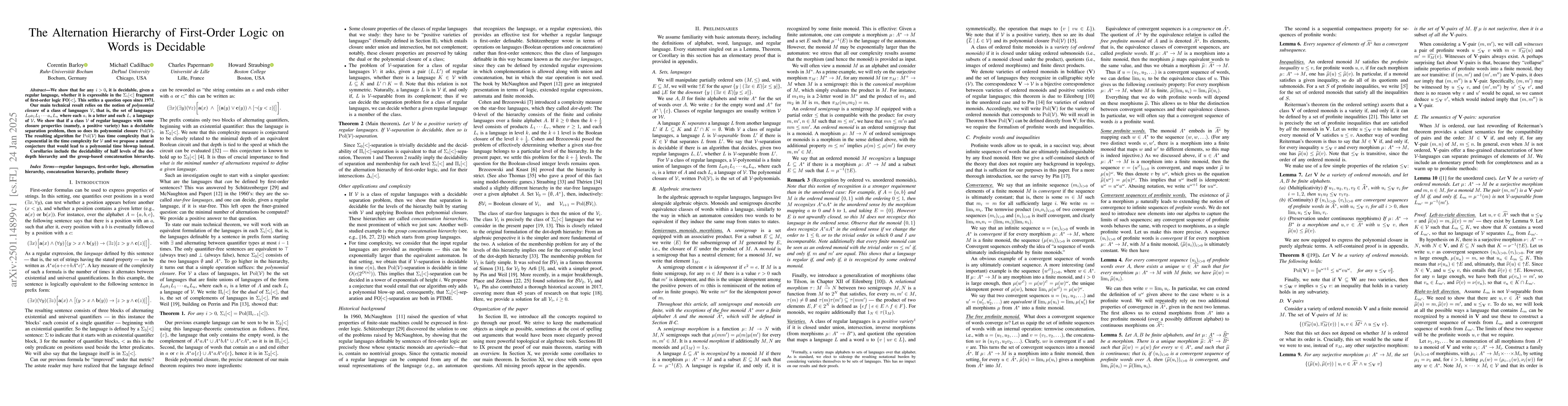 This paper proves the decidability of the alternation hierarchy of first-order logic on words, settling a 1971 question. It introduces polynomial closure of regular language classes to demonstrate that decidability transfers from a class to its polynomial closure, resulting in an exponential-time algorithm.