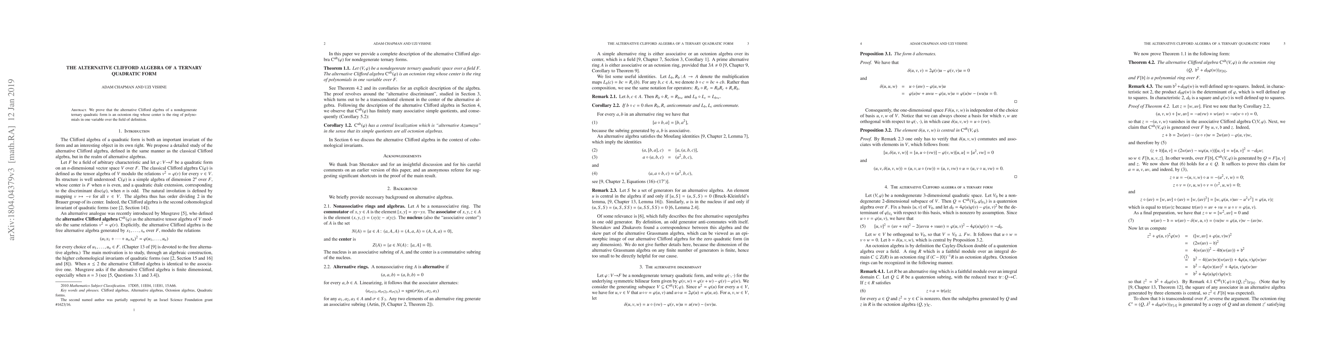 Summary: The paper proves that the alternative Clifford algebra associated with a nondegenerate ternary quadratic form corresponds to an octonion algebra over the polynomial ring defined in the original field. This provides a deeper understanding of the algebraic structure related to ternary quadratic forms.