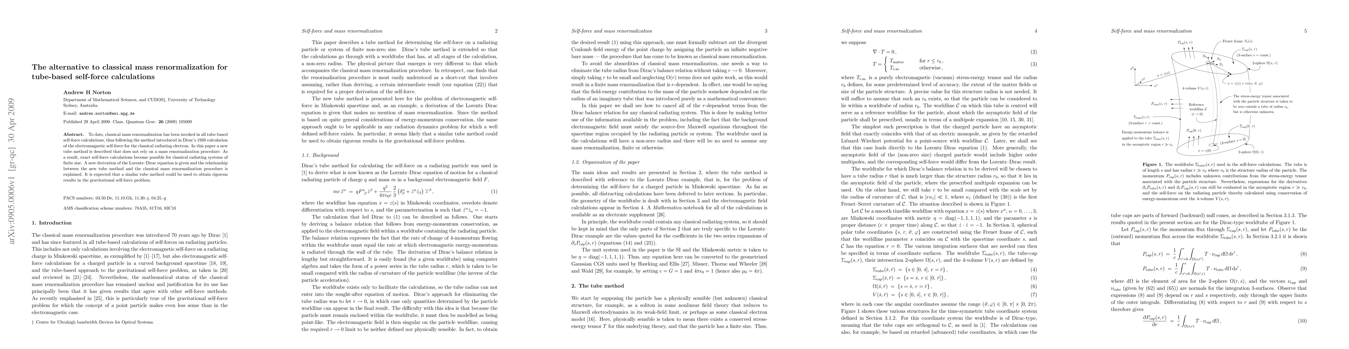 To date, classical mass renormalization has been invoked in all tube-based self-force calculations, thus following the method introduced in Dirac's 1938 calculation of the electromagnetic self-force for the classical radiating electron. In this paper a new tube method is described that does not rely on a mass renormalization procedure. As a result, exact self-force calculations become possible for classical radiating systems of finite size. A new derivation of the Lorentz-Dirac equation is given and the relationship between the new tube method and the classical mass renormalization procedure is explained. It is expected that a similar tube method could be used to obtain rigorous results in the gravitational self-force problem.