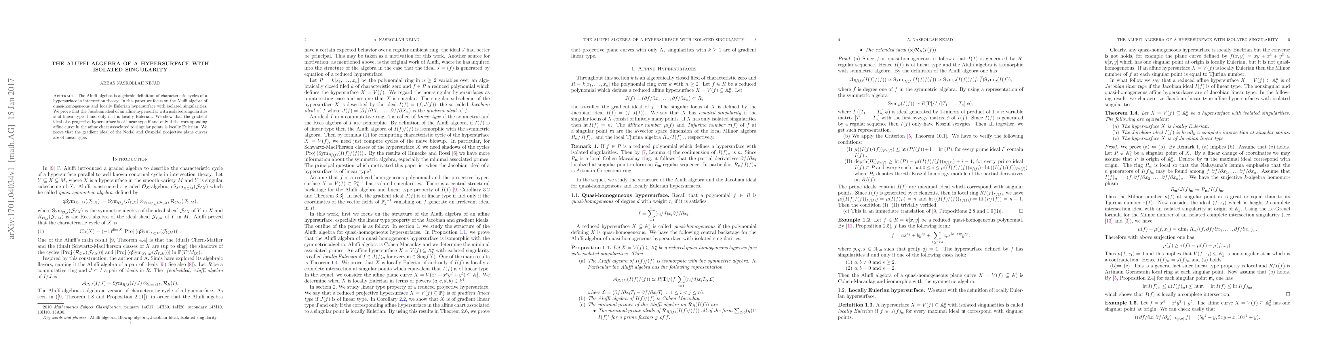 The Aluffi algebra is algebraic definition of characteristic cycles of a hypersurface in intersection theory. In this paper we focus on the Aluffi algebra of quasi-homogeneous and locally Eulerian hypersurface with isolated singularities. We prove that the Jacobian ideal of an affine hypersurfac with isolated singularities is of linear type if and only if it is locally Eulerian. We show that the gradient ideal of a projective hypersurface is of linear type if and only if the corresponding affine curve in the affine chart associated to singular points is locally Eulerian. We prove that the gradient ideal of the Nodal and Cuspidal projective plane curves are of linear type.