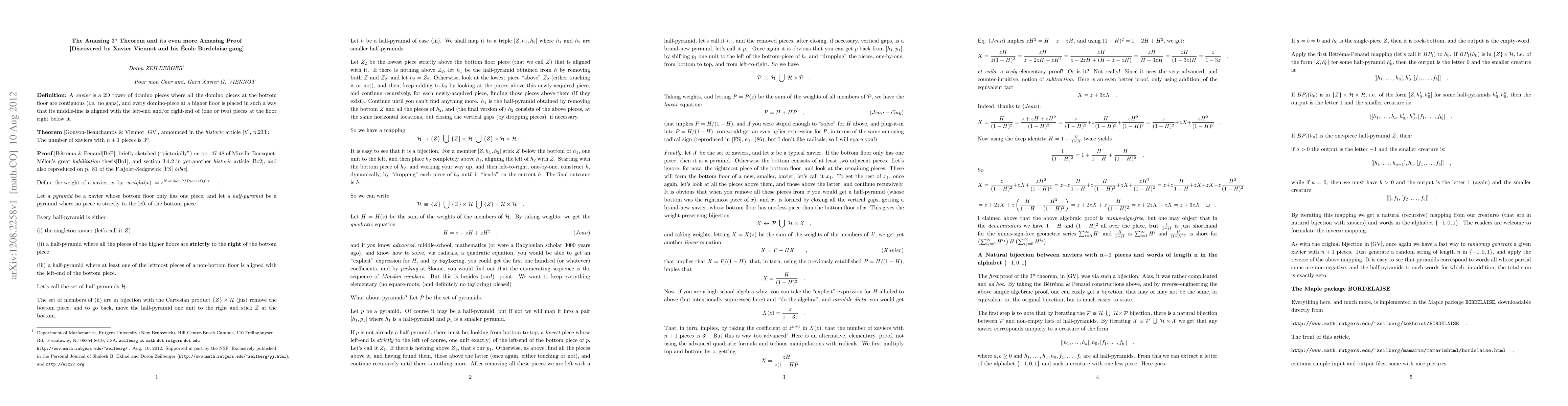 The most amazing (at least to me) result in Enumerative Combinatorics is Dominique Gouyou-Beauchamps and Xavier Viennot's theorem that states that the number of so-called directed animals with compact source (that are equivalent, via Viennot's beautiful concept of heaps, to towers of dominoes, that I take the liberty of renaming xaviers) with n+1 points equals 3^n. This amazing result received an even more amazing proof by Jean B\'etrema and Jean-Guy Penaud. Both theorem and proof deserve to be better known! Hence this article, that is also accompanied by a comprehensive Maple package http://www.math.rutgers.edu/~zeilberg/tokhniot/BORDELAISE that implements everything (and much more)
