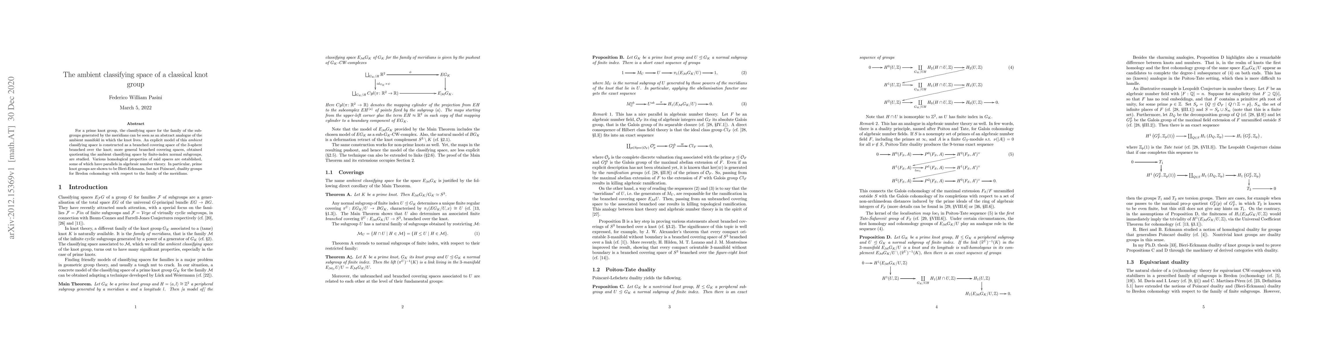 The paper constructs an explicit model for the ambient classifying space of a prime knot group as a branched covering over the 3-sphere, and demonstrates homological properties paralleling algebraic number theory, showing these groups exhibit Bieri-Eckmann but not Poincaré duality for Bredon cohomology.