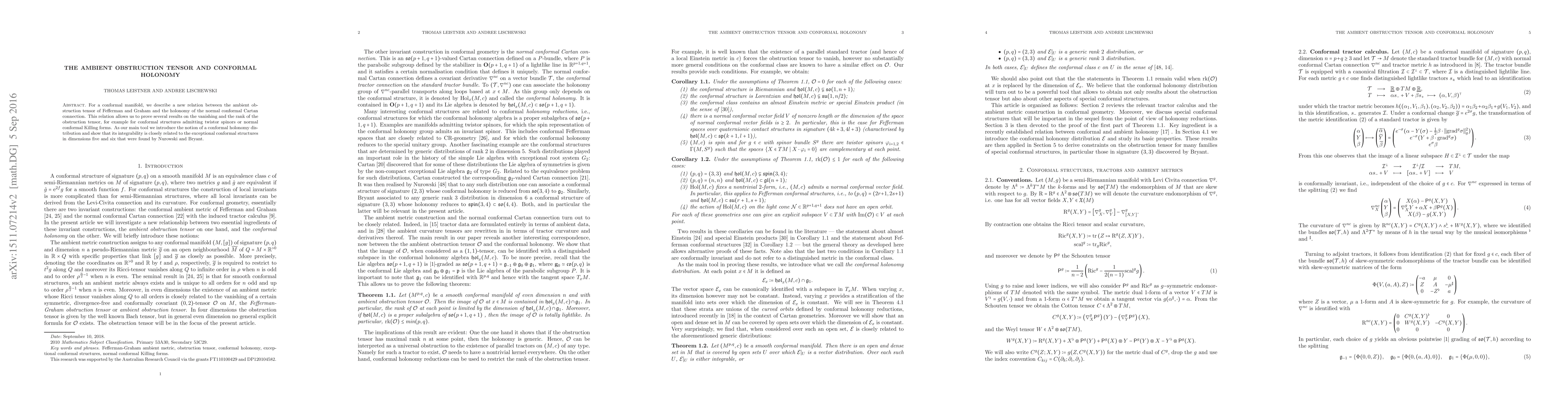 This paper introduces a new connection between the ambient obstruction tensor and the holonomy of the normal conformal Cartan connection in conformal manifolds, proving results about the tensor's vanishing and rank, particularly for structures with twistor spinors or normal conformal Killing forms, and uses conformal holonomy distributions to explore exceptional structures in dimensions five and six.